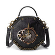 The Opulessa Exotic Shoulder Bag is crafted from premium cow leather with a smooth pattern and features a secure zipper closure. Its unique hexagonal shape houses a well-organized interior, including a slot pocket, cell phone pocket, zipper pocket, key chain holder, and compartment, making it both stylish and functional for everyday use.