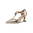 The Veltique Serpatura Stilettos feature a pointed toe design with a 2.8-inch heel, crafted from premium cow leather for the upper and pigskin for the insole, and are secured with a buckle closure.