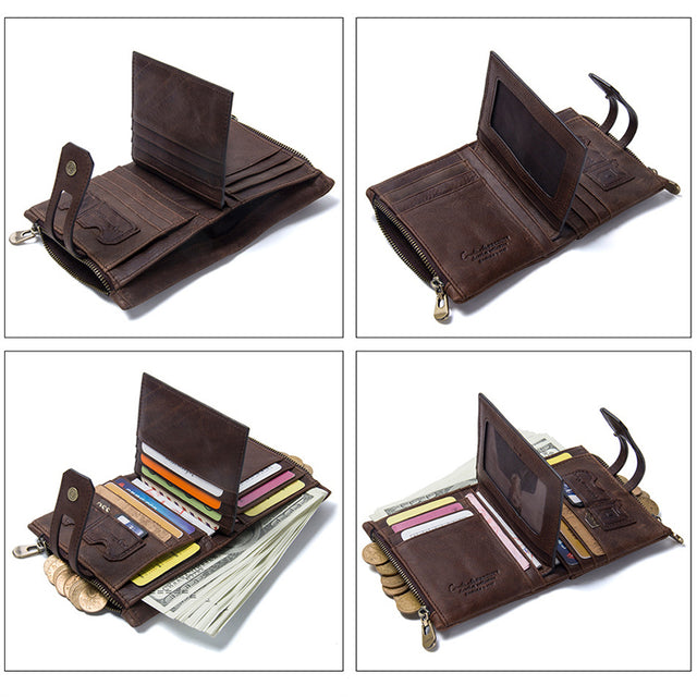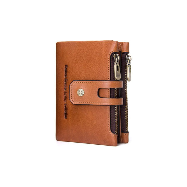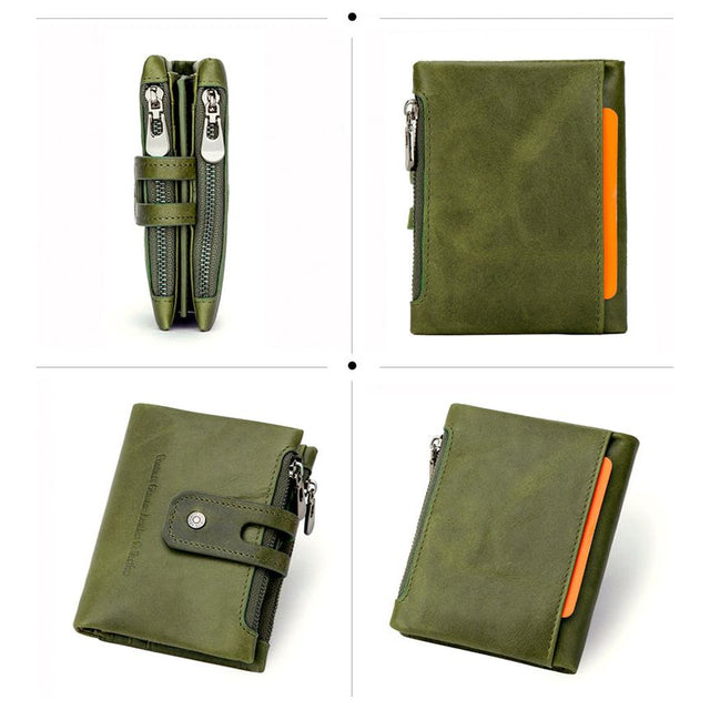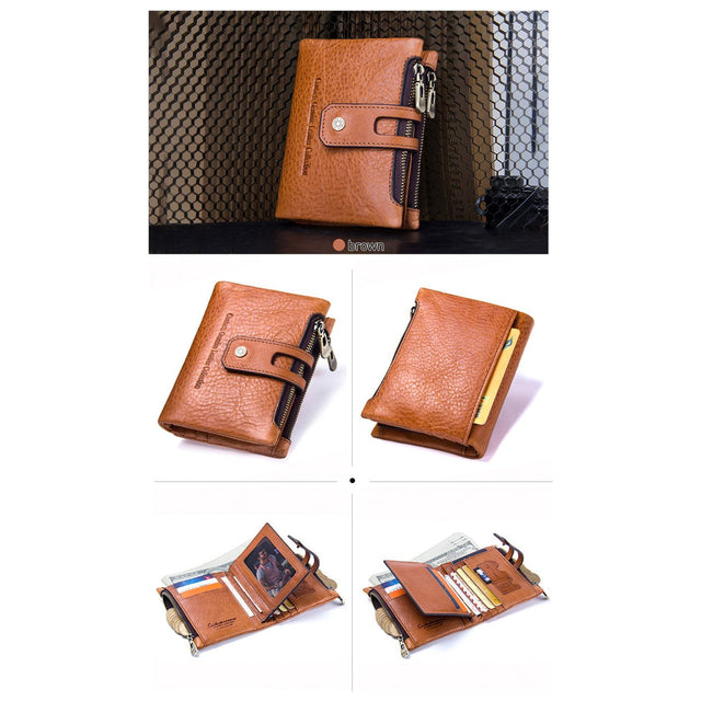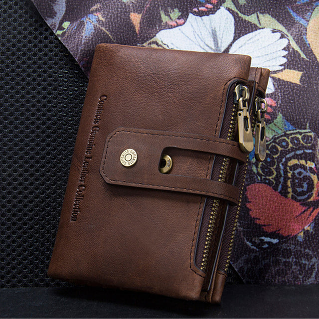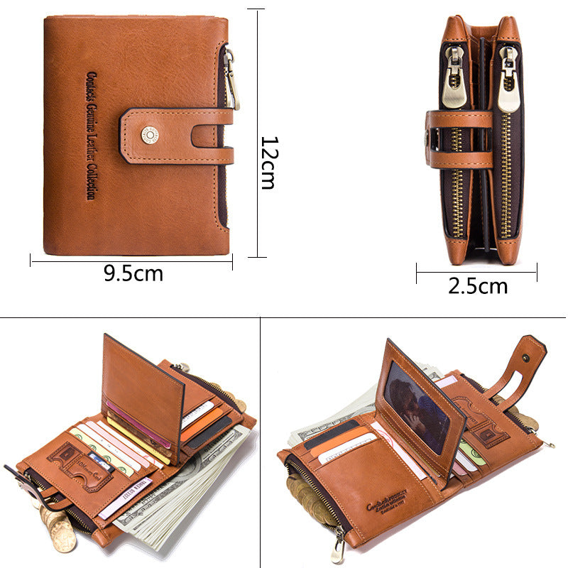 The Goldara Prestige Purse is a vintage-style wallet crafted from genuine cow leather with a genuine leather lining, measuring approximately 4.6 inches in length, 3.7 inches in height, and 0.4 inches in width, and weighing 85 grams.
