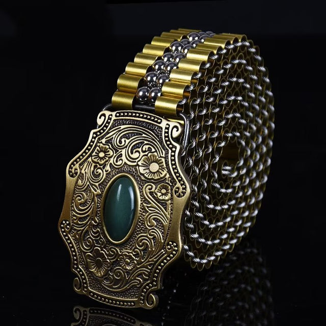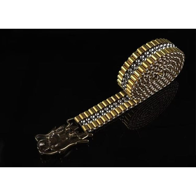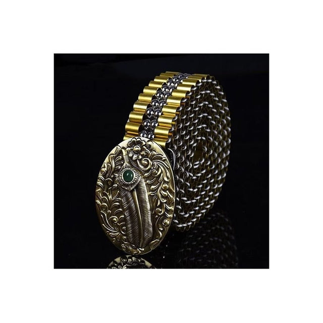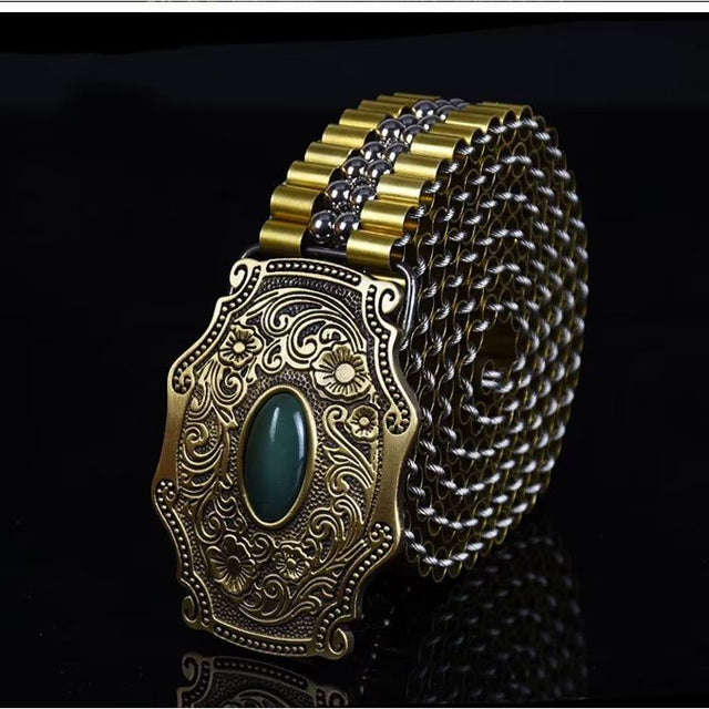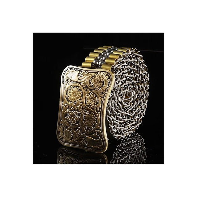 The Veltique Refined Style Belt is crafted from durable stainless steel, featuring a belt width of 1.38 inches and a buckle measuring 3.15 inches in length by 2.36 inches in width.