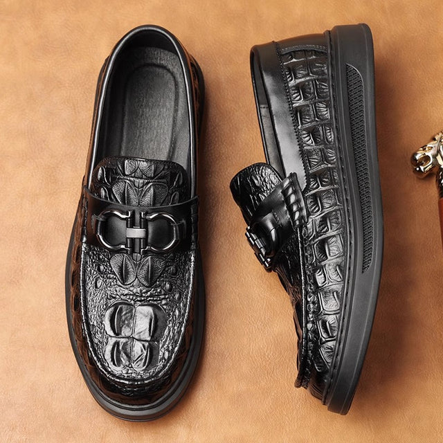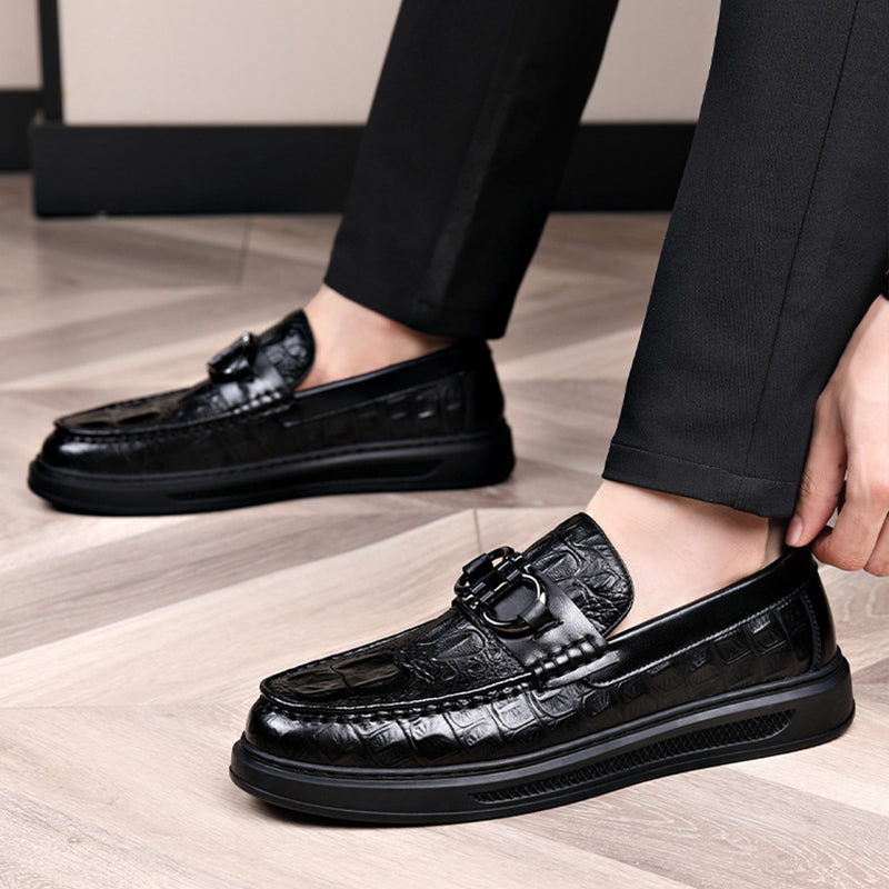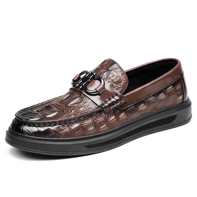 The Serpatura Chromura Loafers feature a solid pattern with a slip-on closure, crafted from PU material, and designed with a round toe and a durable rubber outsole.