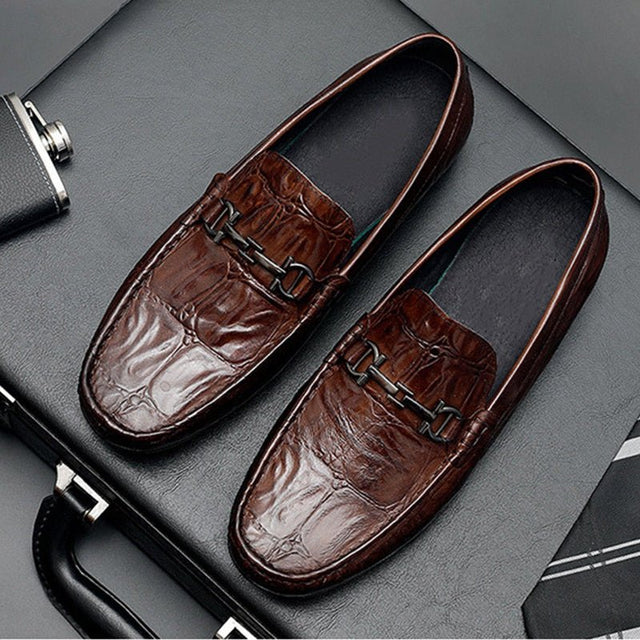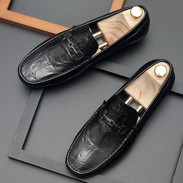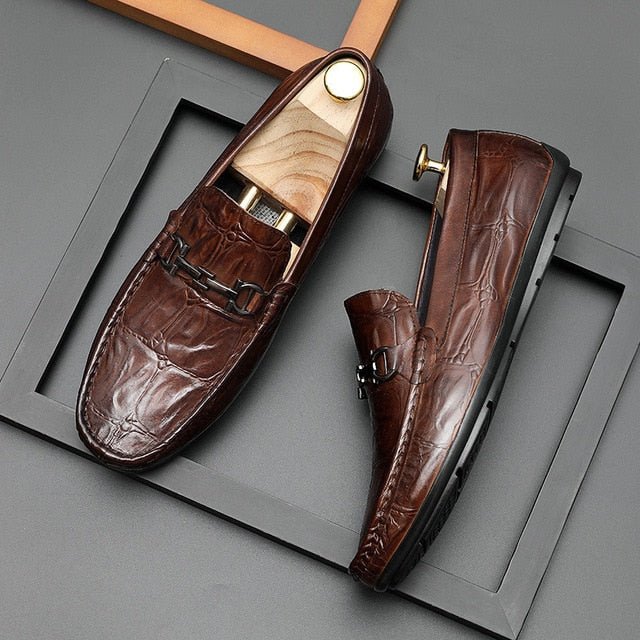 The Diamoré Business Luxe Loafers feature a genuine cow leather upper and lining, a full grain leather insole, and a durable rubber outsole, with a solid pattern and slip-on closure for easy wear.