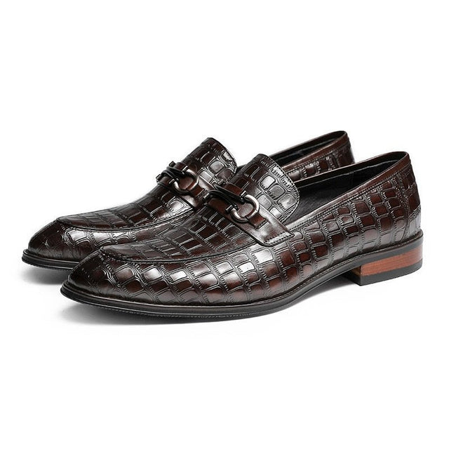 The Nuvélisse Luxe Glide Slides are crafted from genuine leather with a solid pattern, featuring a pointed toe design and a convenient slip-on closure, ensuring a true-to-size fit.