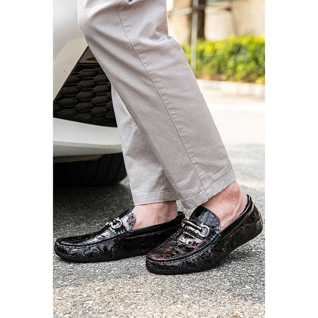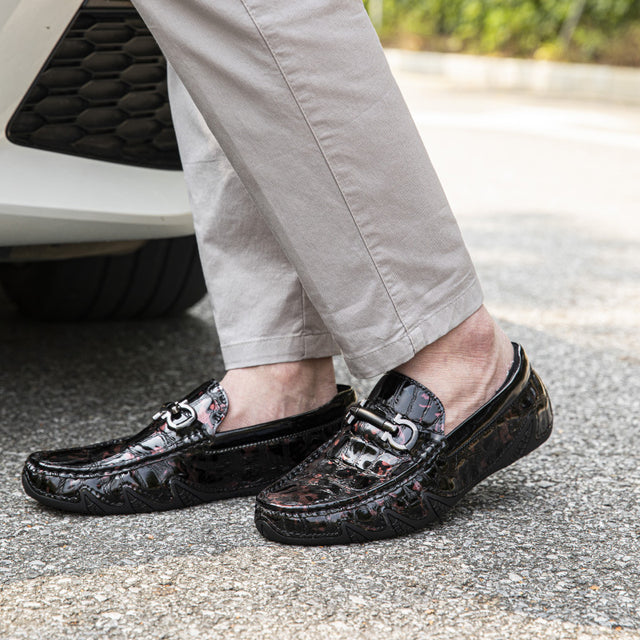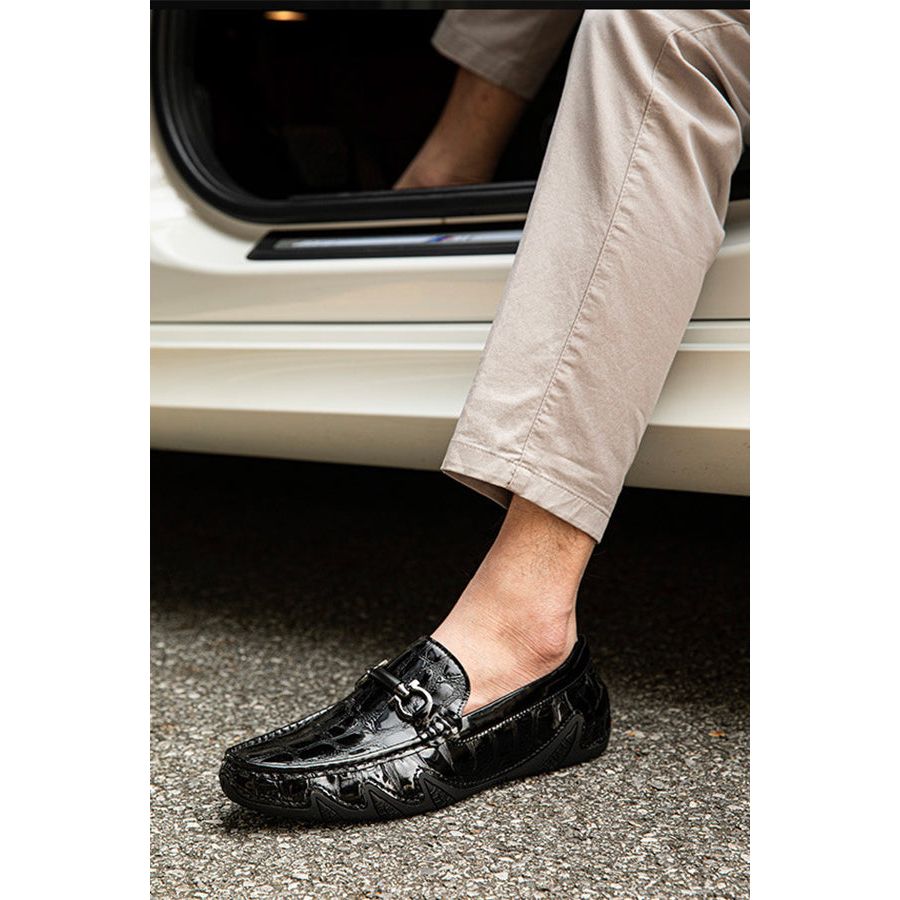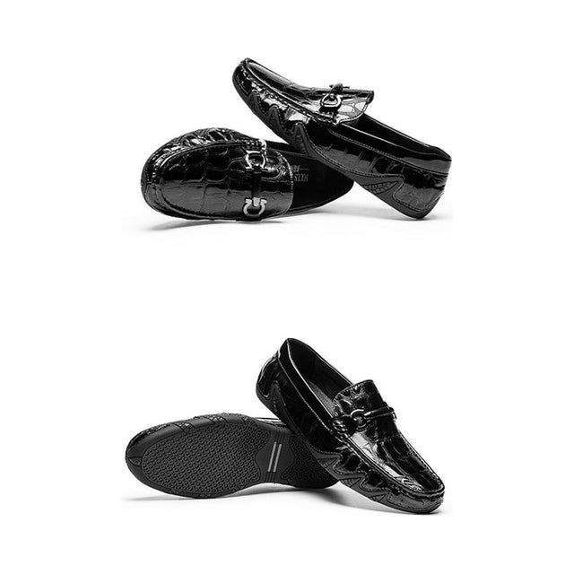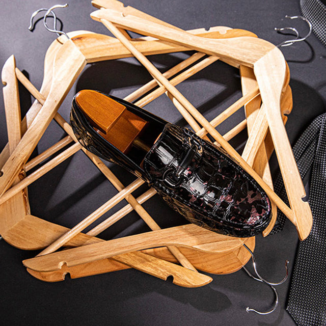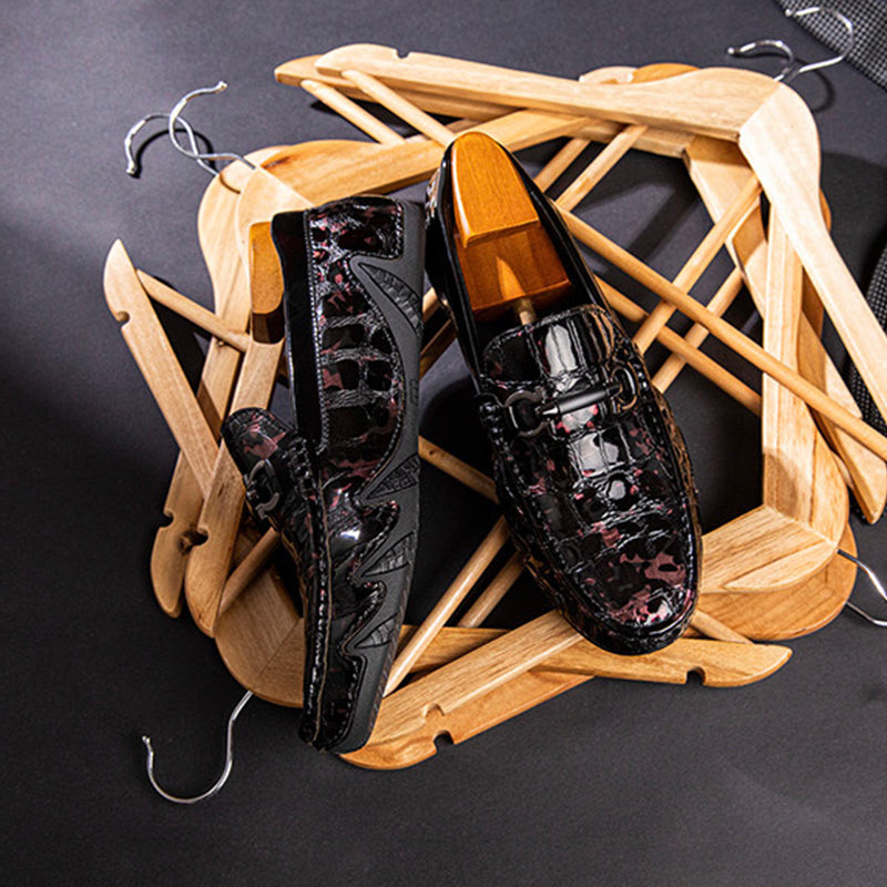 The Ostranuxe Business Slip Shoes are crafted from genuine cow leather for the upper material and feature a durable rubber outsole, with a solid pattern and a convenient hasp closure type.