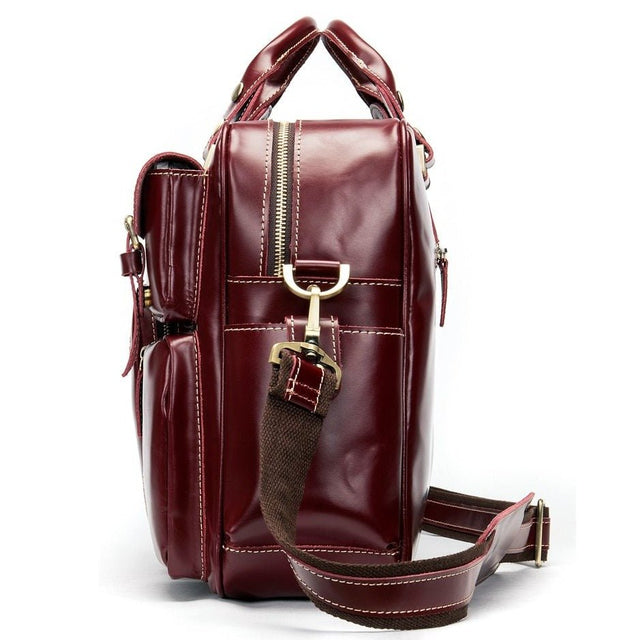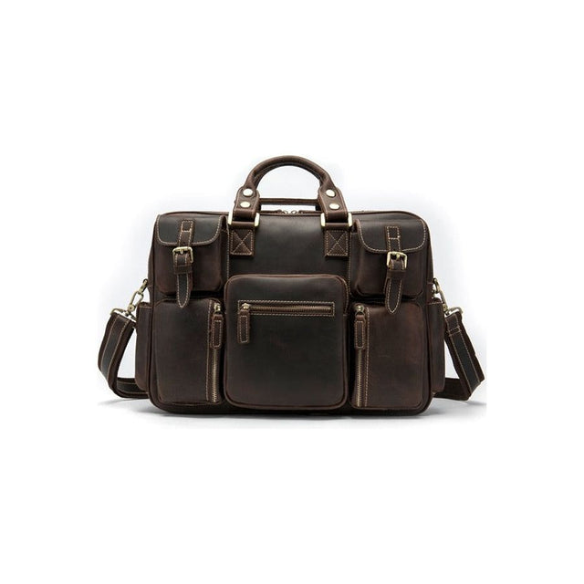 The Veltique Prestige Carryall Bag is crafted from genuine cow leather and features a secure zipper closure, complemented by a soft handle for comfortable carrying. Inside, it includes an interior slot pocket for organized storage.