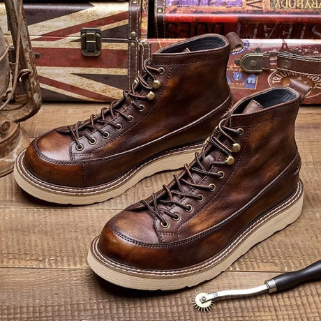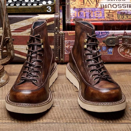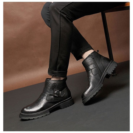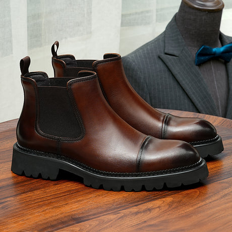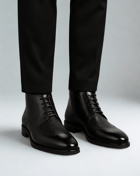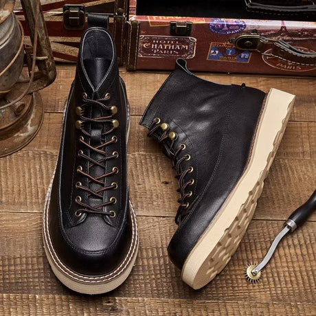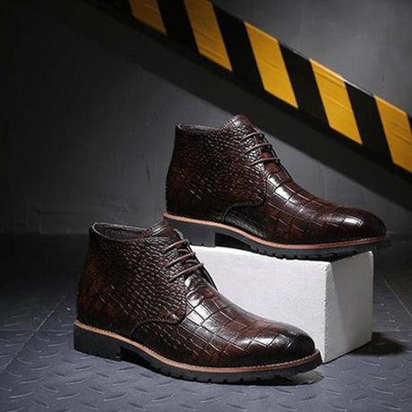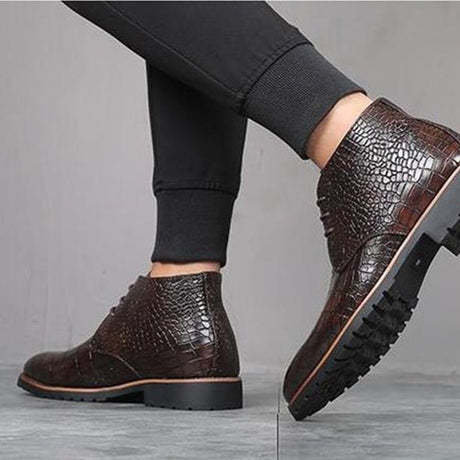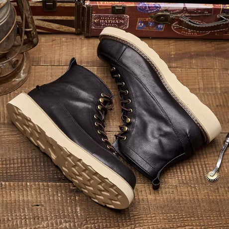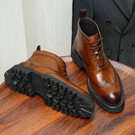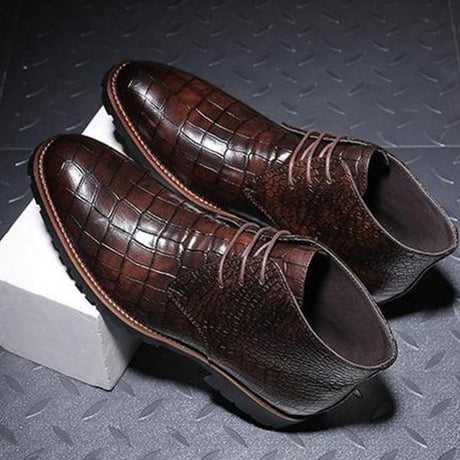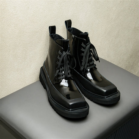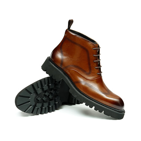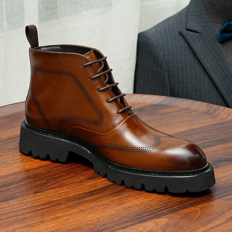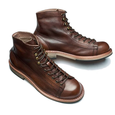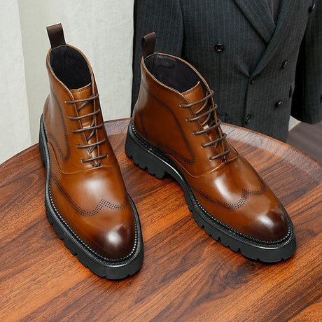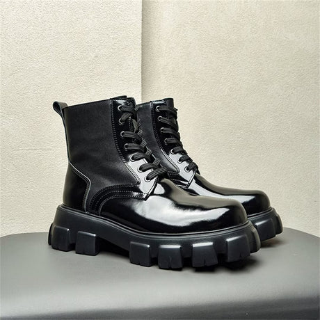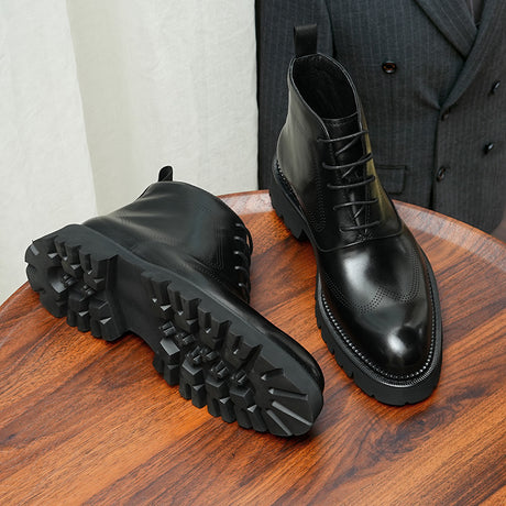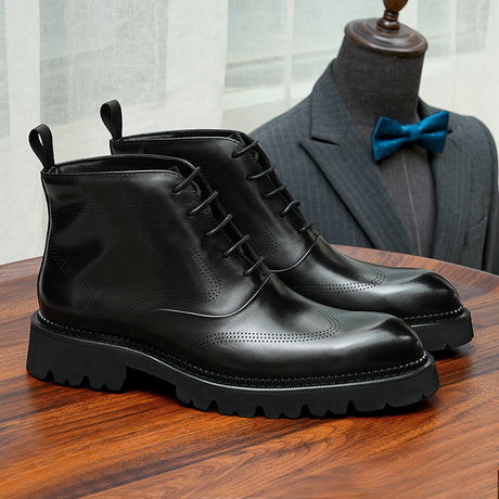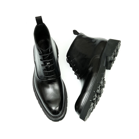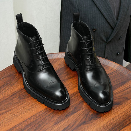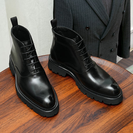 The Luxalon Business Lace-Ups are fashion boots crafted from cow leather with a solid pattern, featuring a round toe design and a durable rubber outsole, secured with a lace-up closure.