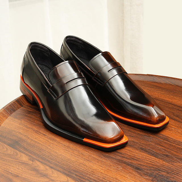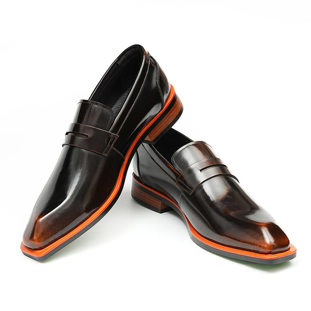 The Aurastyle Ebonique Croc Leather Brogues feature a solid pattern with an upper and lining made from genuine cow leather, a full grain leather insole, and a durable rubber outsole. Designed with a round toe and a convenient slip-on closure, these brogues offer both style and comfort.