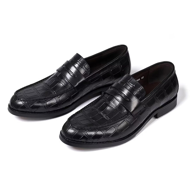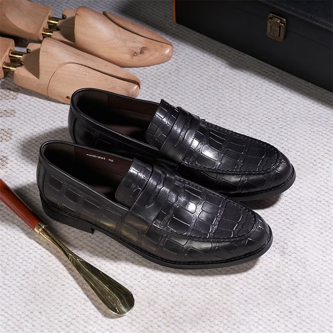 The Serpatura Luxury Event Loafers feature a solid pattern crafted from premium cow leather, with a comfortable round toe design and convenient slip-on closure. The loafers are built with a durable rubber outsole and a soft pigskin insole for added comfort.