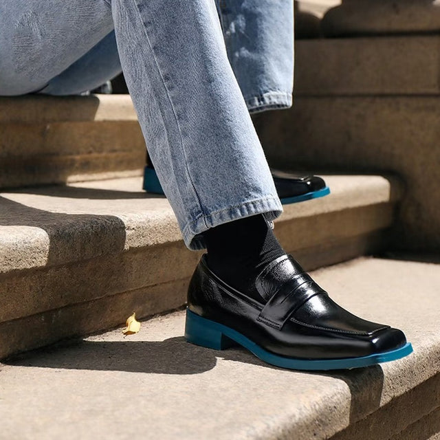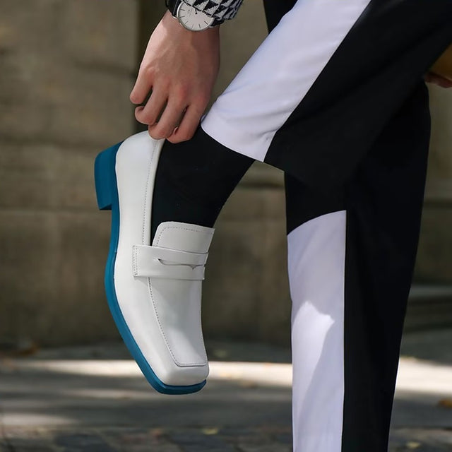 The Zephyrique Office Slip-Ons feature a genuine cow leather upper and a genuine pigskin leather lining, designed with a convenient slip-on closure and a distinctive square toe.