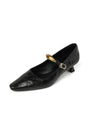 The Opulessa Marbelleve Slip Heels feature a solid pattern with an upper made of genuine cow leather and a lining of genuine pigskin leather. They have a 1.6-inch square heel, a pointed toe, and a convenient slip-on closure.