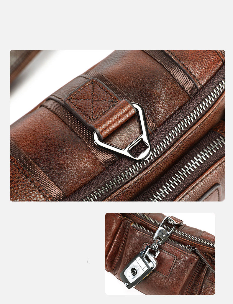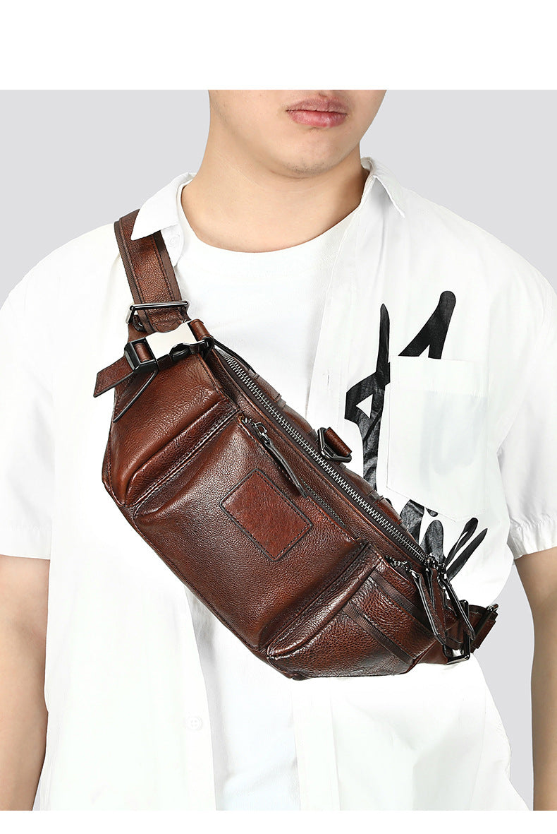 The Fieralis Ebonique Clutch is crafted from genuine cow leather, featuring a solid pattern and measuring approximately 12.5 inches in length. It is designed as a soft chest bag, offering both style and functionality.