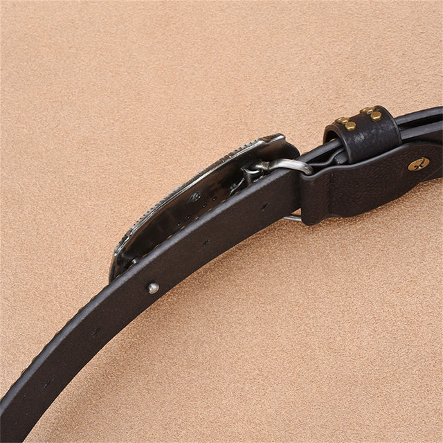 The Fieralis Marbelleve Signature Belt is crafted from premium cowskin leather and features an automatic buckle, with a belt width of 1.5 inches for a sleek and functional design.