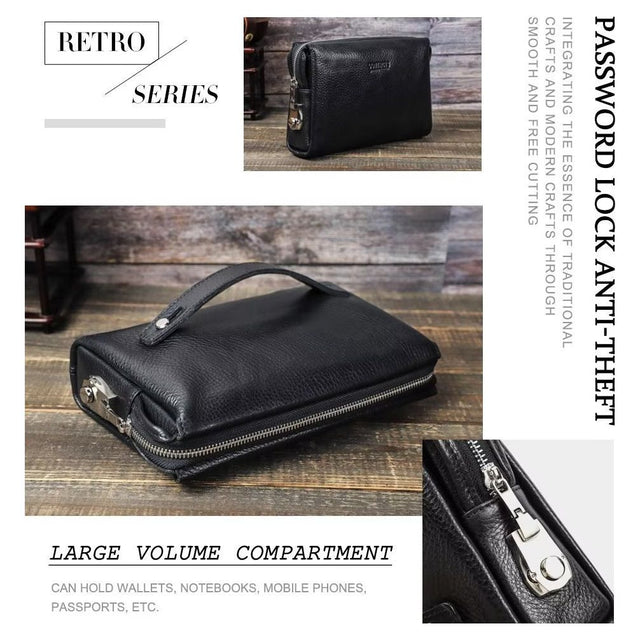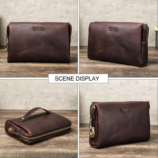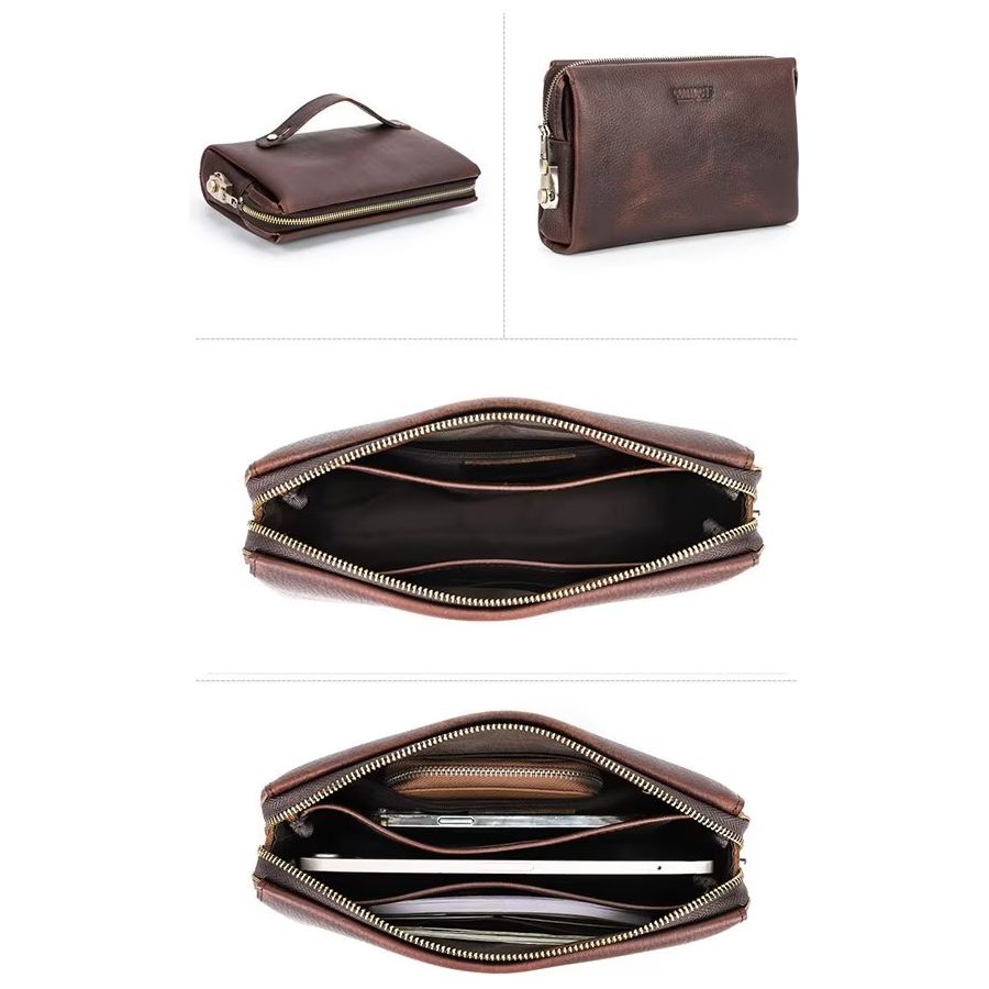 The Veltique Secure Zip Wallet is crafted from durable cowhide leather, featuring a secure zip closure and a compact design with a height of approximately 2.36 inches.