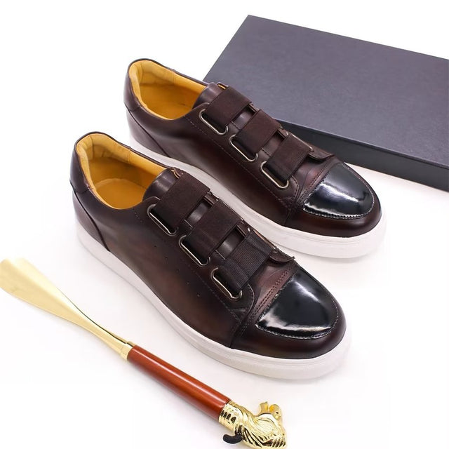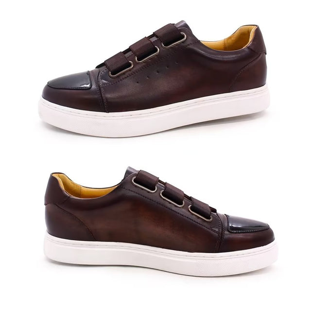 The Veltique Easy-Wear Sneakers feature a genuine cow leather construction with a hand-painted pattern, offering a stylish yet durable option for outdoor and casual wear. These slip-on sneakers include a full grain leather insole for added comfort.