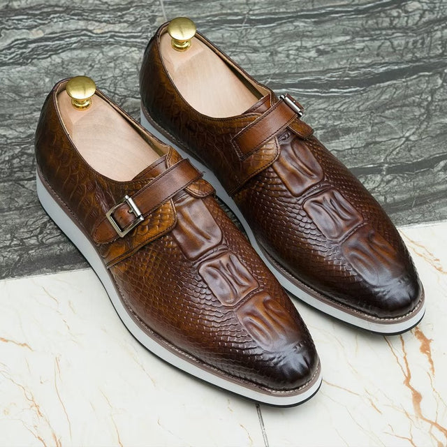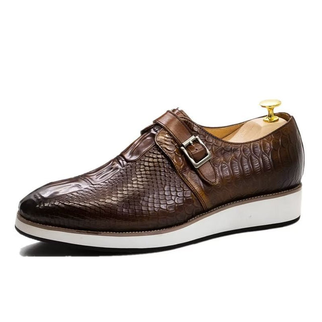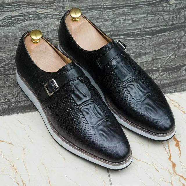 The Opulessa Business Monk Shoes feature a slip-on closure with a main material of genuine cow leather, complemented by a pigskin insole and lining for enhanced comfort and durability.