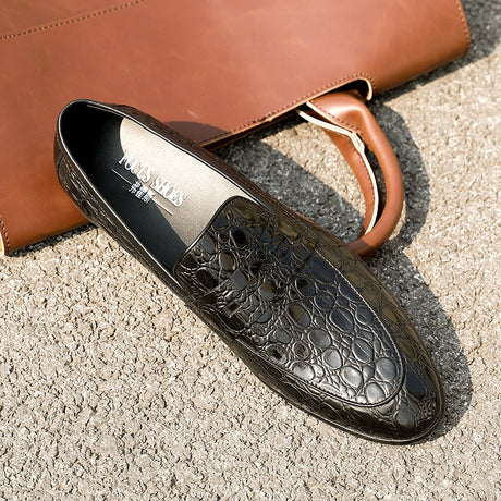 The Serpatura Loafer Elegance features a slip-on design crafted from genuine cow leather, complemented by a durable rubber outsole, making it an ideal choice for casual wear.