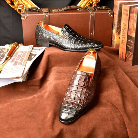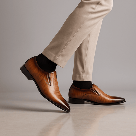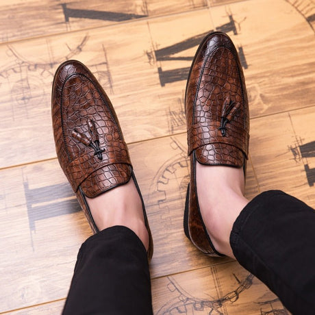 The Veltique Croctex Comfort Walkers are slip-on loafers crafted from durable PU material, featuring a pointed toe design and a rubber outsole for reliable traction.
