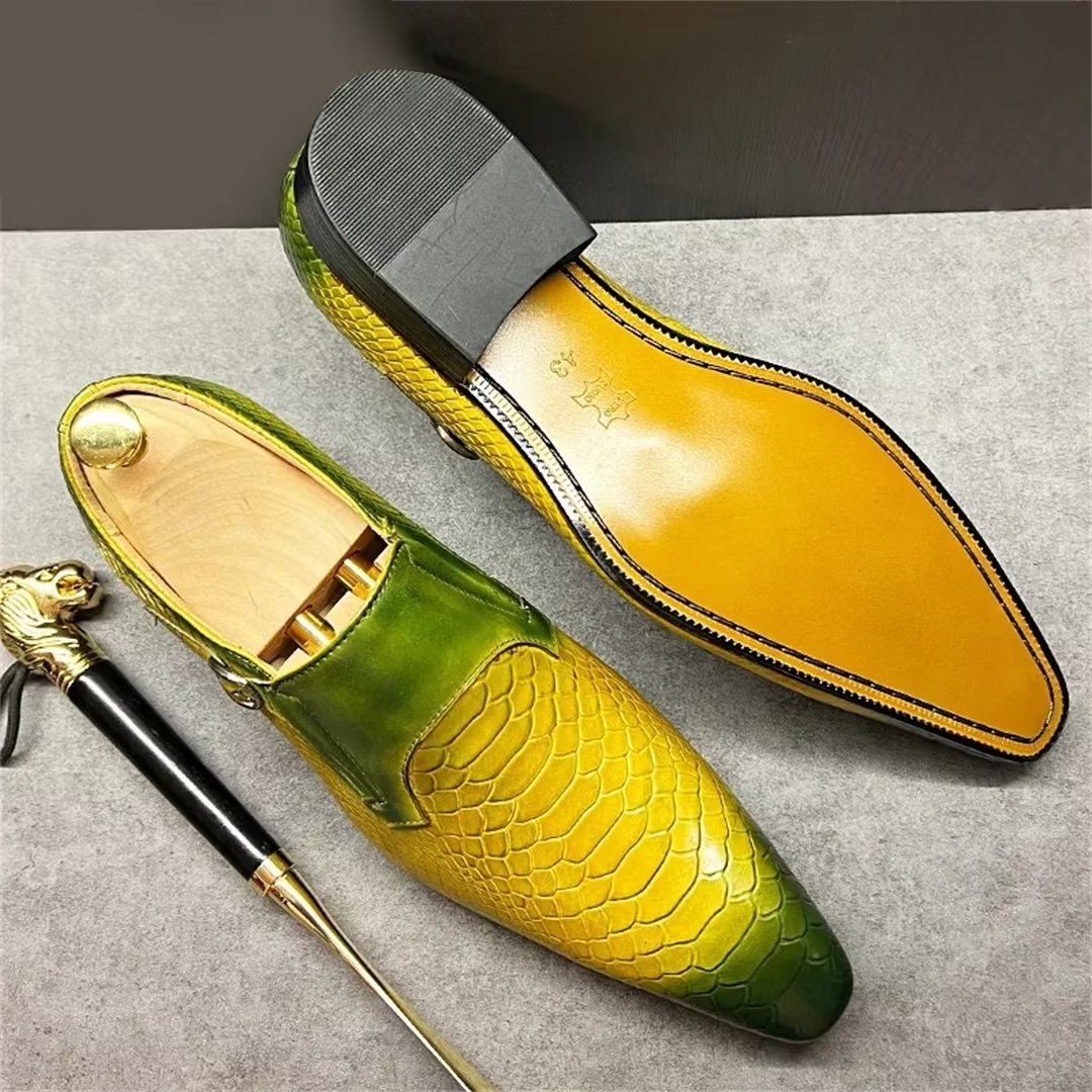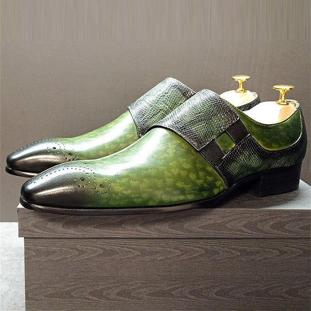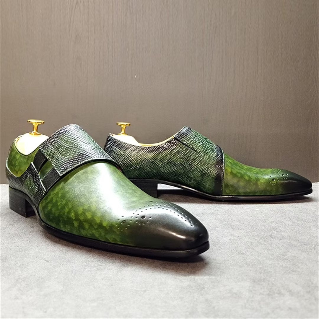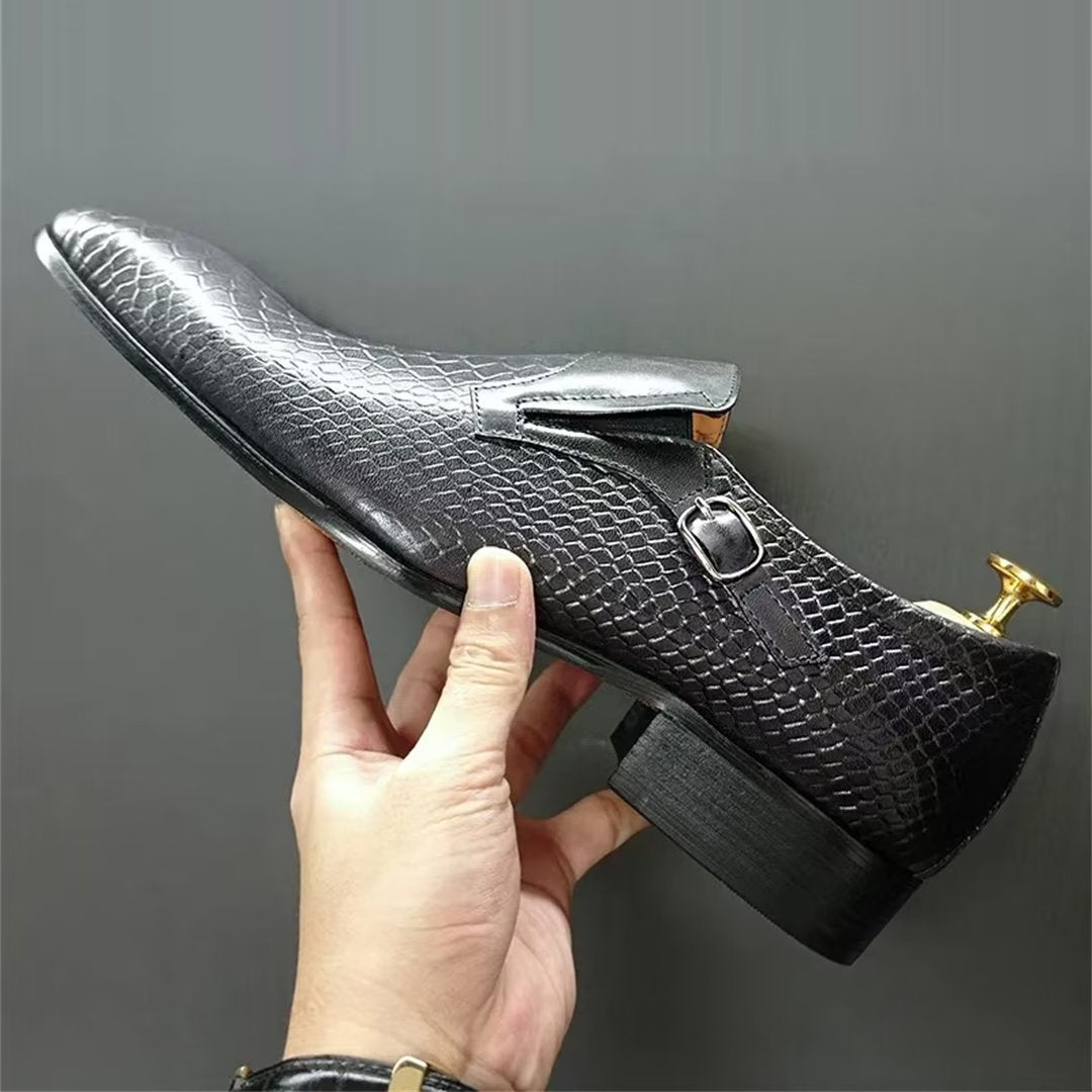 The Croctex Ostranuxe Elegance Monk Shoes feature a solid pattern crafted from genuine leather, with a slip-on closure and a pointed toe design, complemented by a durable rubber outsole.