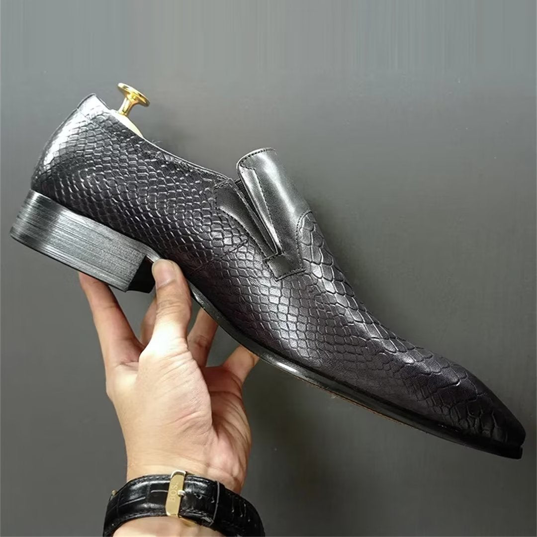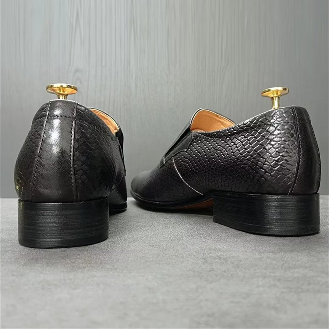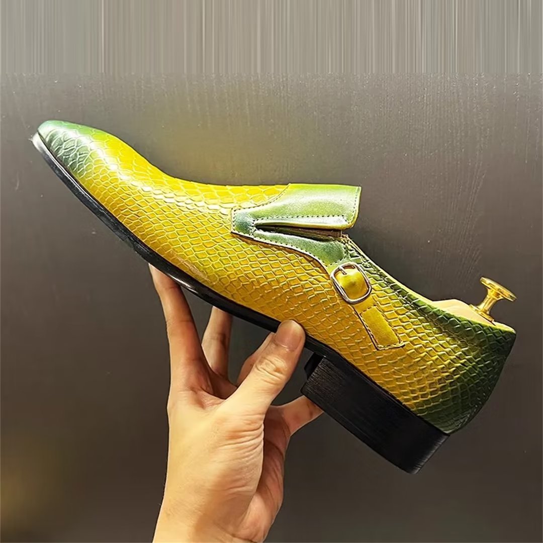 The Croctex Ostranuxe Elegance Monk Shoes feature a solid pattern crafted from genuine leather, with a slip-on closure and a pointed toe design, complemented by a durable rubber outsole.