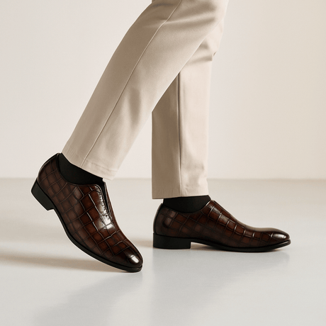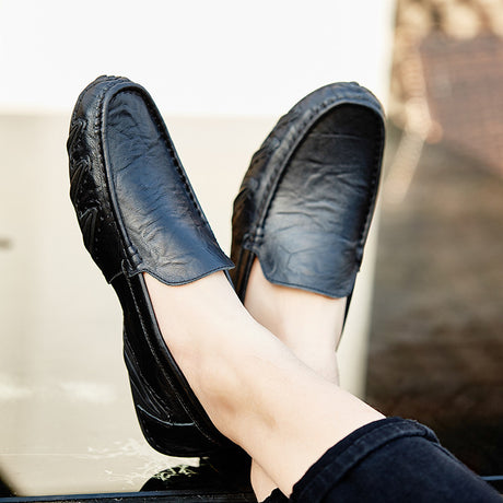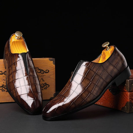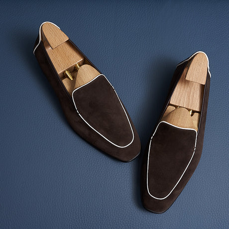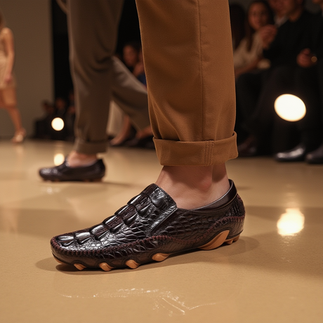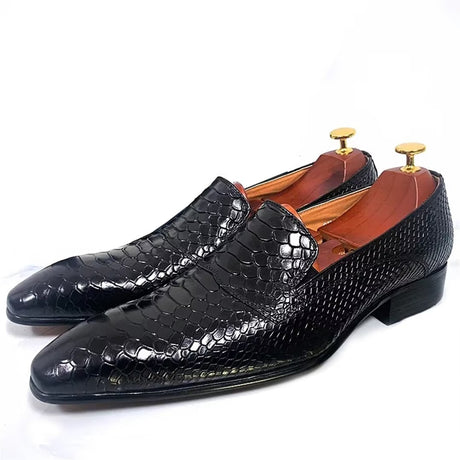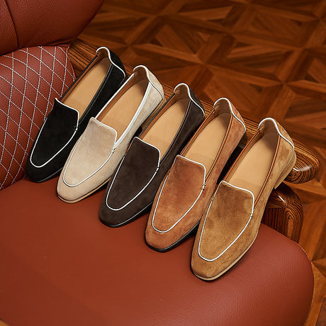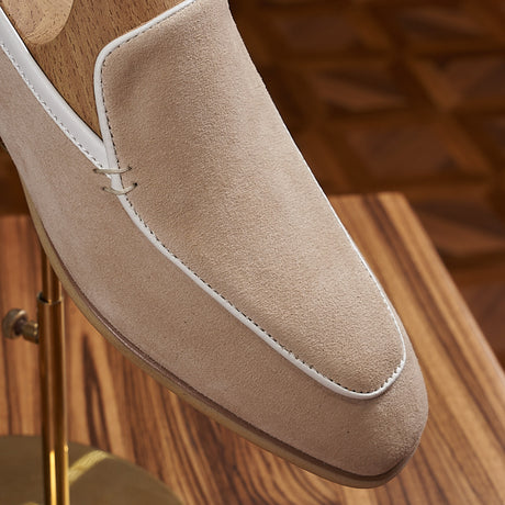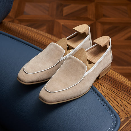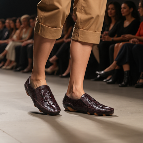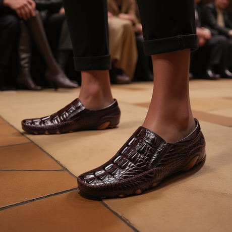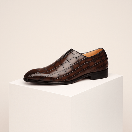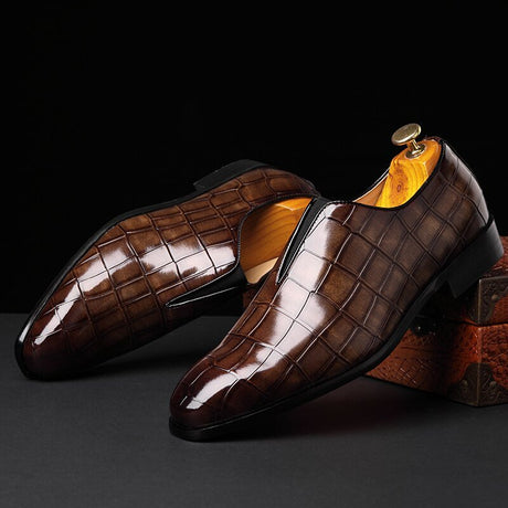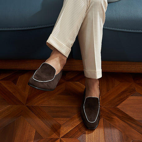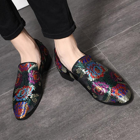 The Velstrada Royale Glide Loafers feature a luxurious silk upper with a floral pattern, a pointed toe design, and a convenient slip-on closure.