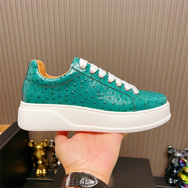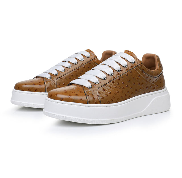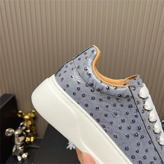 The Silvareign Elite Lace-Ups are crafted from genuine cow leather, featuring a solid pattern and a lace-up closure. These sneakers incorporate a platform design and have a durable rubber outsole, making them both stylish and functional.