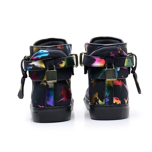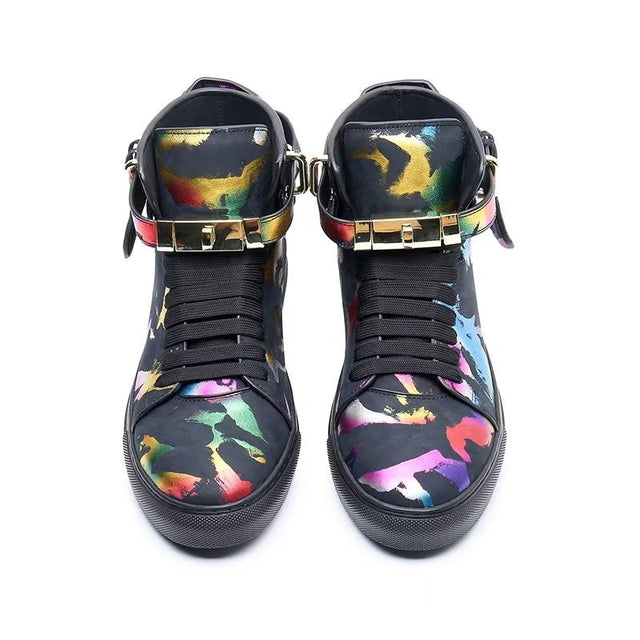 The Leovante Luxe Kicks are sneakers crafted from genuine cow leather, featuring a graffiti pattern and a medium heel height of 1.2 to 2 inches. They have a lace-up closure and fit true to size, ensuring you can confidently select your normal size.