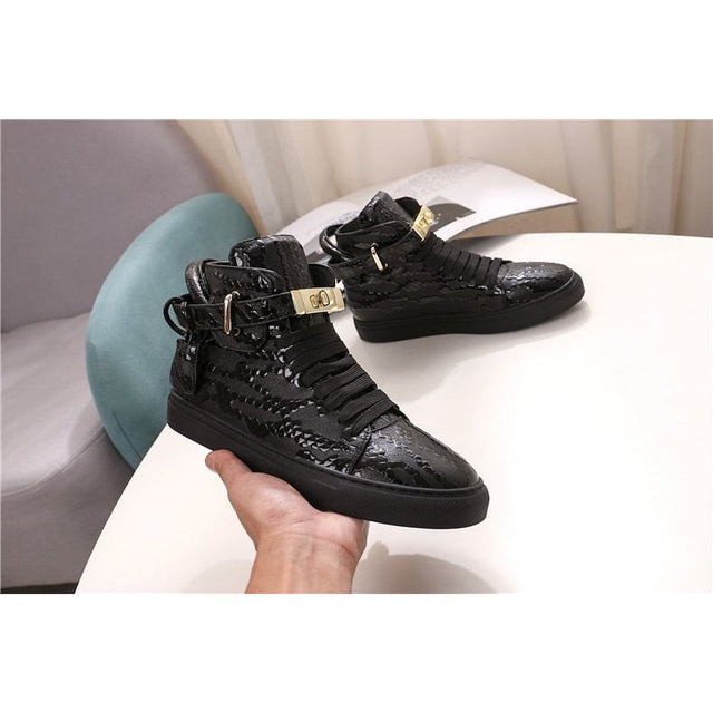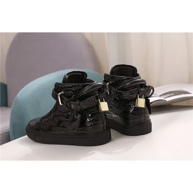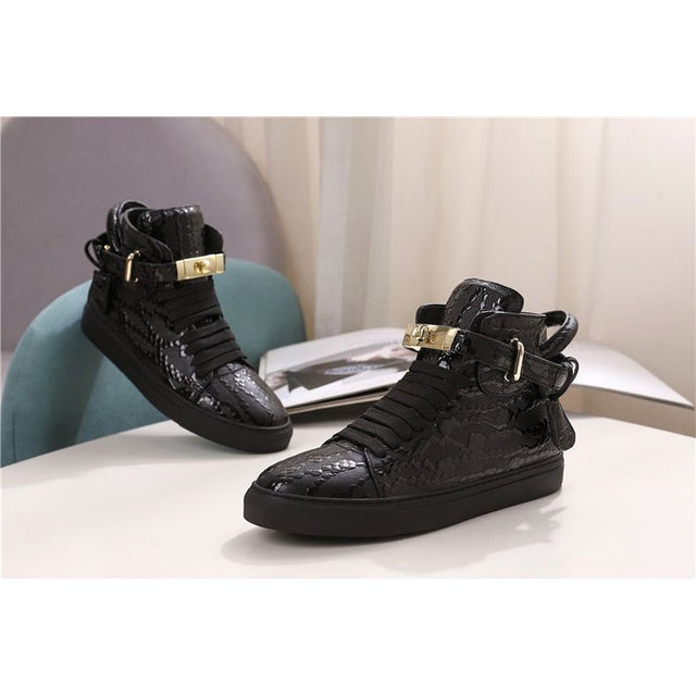 The Opulessa Lace-Up Footwear features a genuine cow leather upper and a durable rubber outsole, complemented by a pigskin insole for added comfort. Designed with a solid pattern and a round toe shape, these sneakers include a lace-up closure and are accented with metal decorations for a stylish touch.