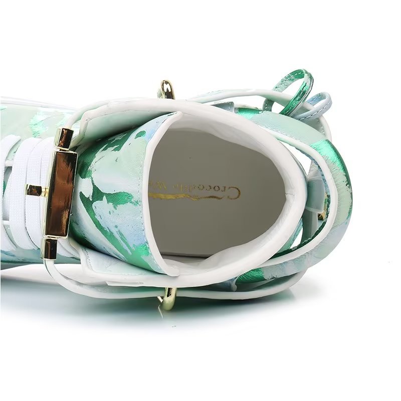 The Ostranuxe Business Croc-Sneakers feature a genuine cow leather upper and a durable rubber outsole, with a lace-up closure for a secure fit. The insole and lining are crafted from genuine pigskin leather, providing comfort and breathability, while the round toe design and metal decoration add a touch of sophistication.