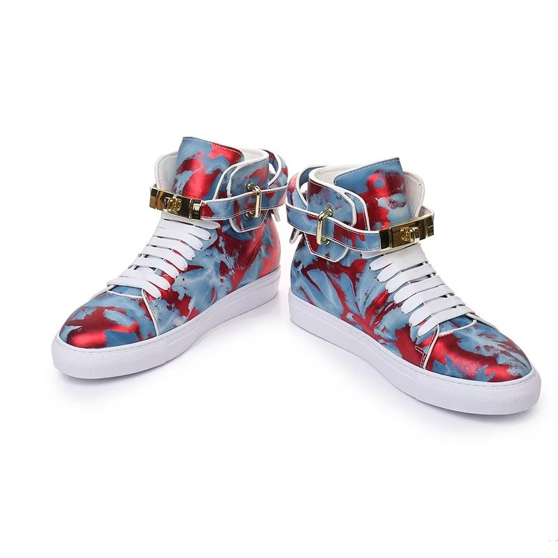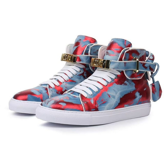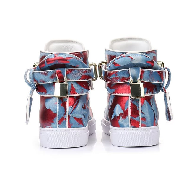 The Luxalon Opulessa Style Sneakers are crafted from genuine cow leather and feature a unique graffiti pattern. They have a medium heel height ranging from 1.2 to 2 inches and a lace-up closure, ensuring a true-to-size fit.