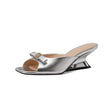 The Silvareign Signature Slip Heels feature a peep toe design with an upper and insole made from cow leather, a TPR outsole, and a convenient slip-on closure, all complemented by a heel height of approximately 2.1 inches.