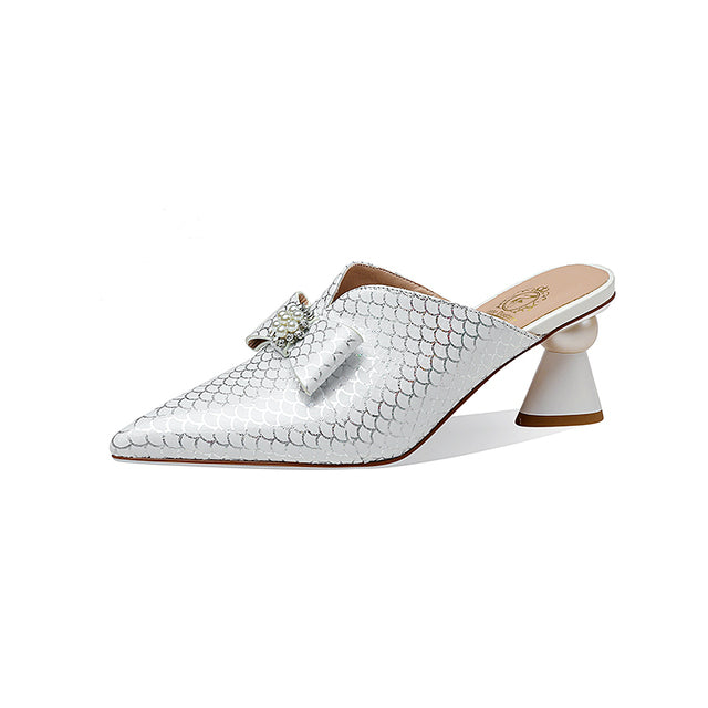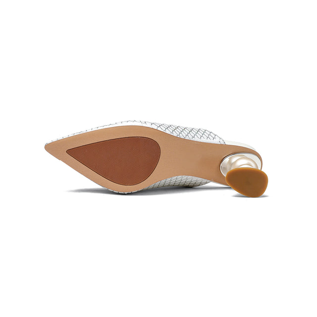 The Zephyrique Snakara Slip Heels feature a solid pattern with a high heel height ranging from 2 to 3 inches, crafted from genuine cow leather for the upper and pigskin for the lining. These slip-on heels have a sheepskin insole and a durable rubber outsole, offering both style and comfort.