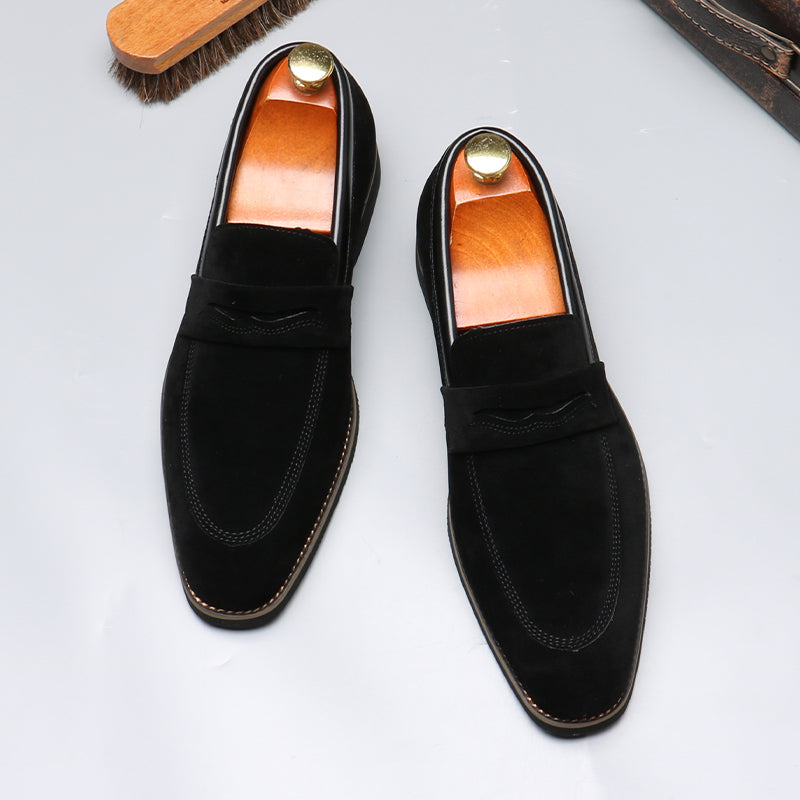 The Auburnyx Luxury Business Loafers feature a solid pattern with a slip-on closure, crafted from durable PU material, and designed with a round toe shape, complemented by a rubber outsole for reliable traction.
