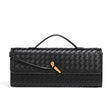 The Serpatura Event Clutch Purse is crafted from soft PU material, featuring a solid pattern and a secure buckle closure, with an interior slot pocket for organization.