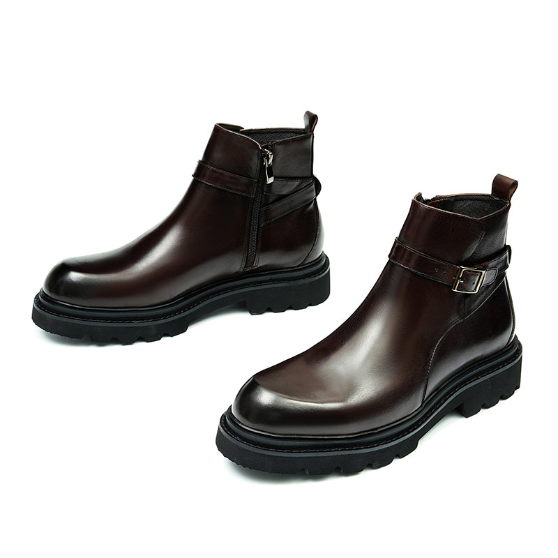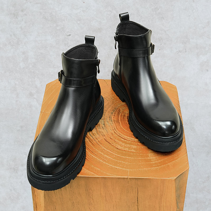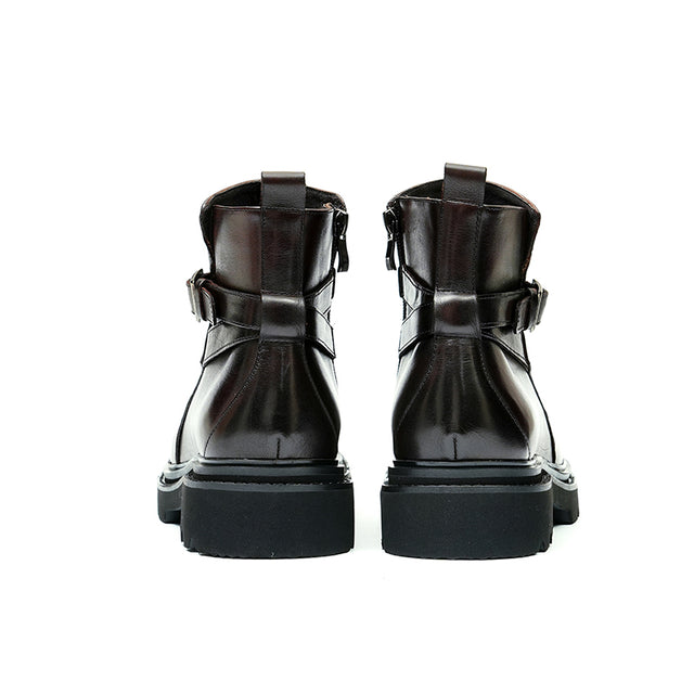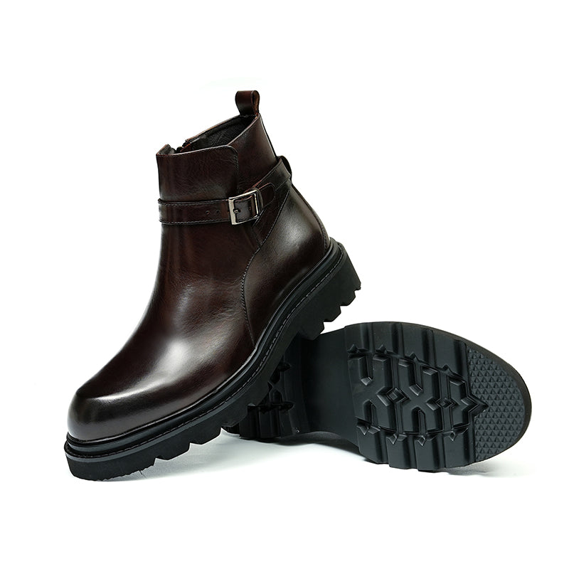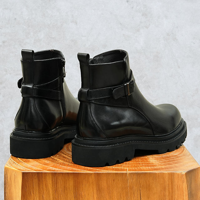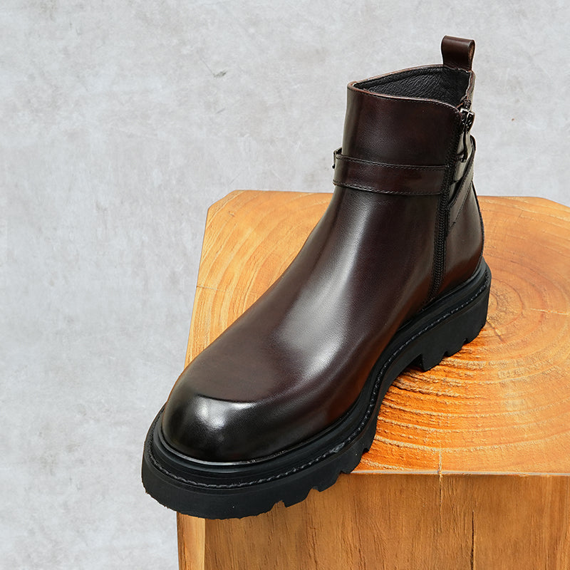 The Veltique Easy Elegance Dress Boots feature a first layer cowskin upper and genuine leather shaft, with a cow leather lining for added comfort. These ankle-height boots have a solid pattern and a convenient zip closure, complemented by a 2-inch heel and a durable rubber outsole.