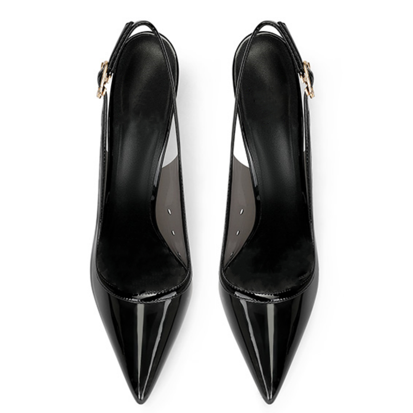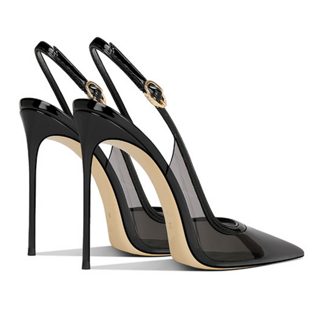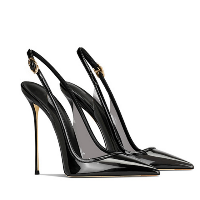The Veltique Signature Event Stilettos are crafted from durable PU material with a solid pattern and feature a buckle closure. Designed as heel sandals, they have a distinctive fish mouth toe shape and a rubber outsole for added traction.