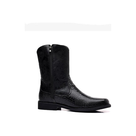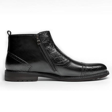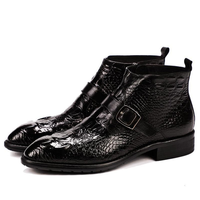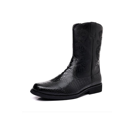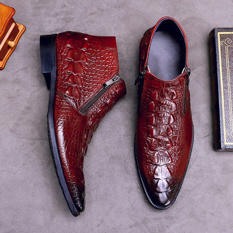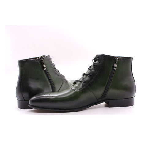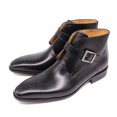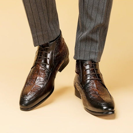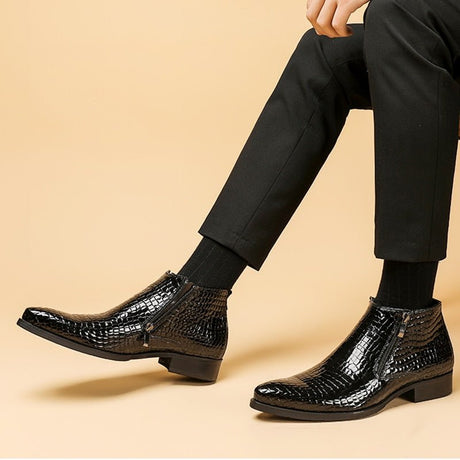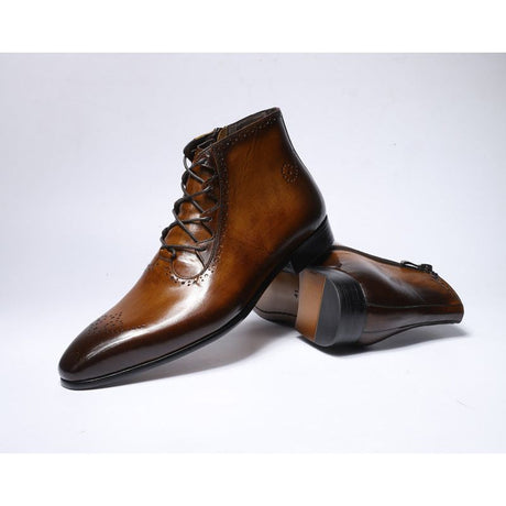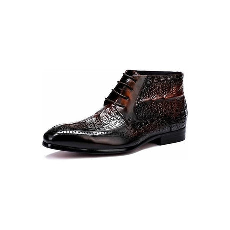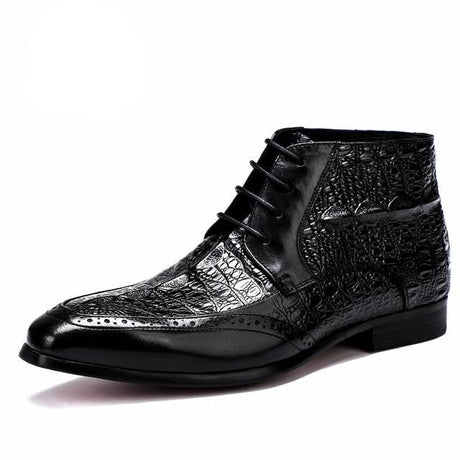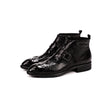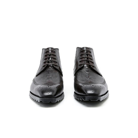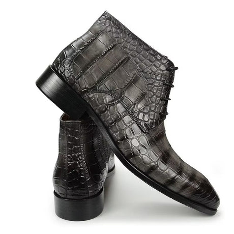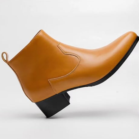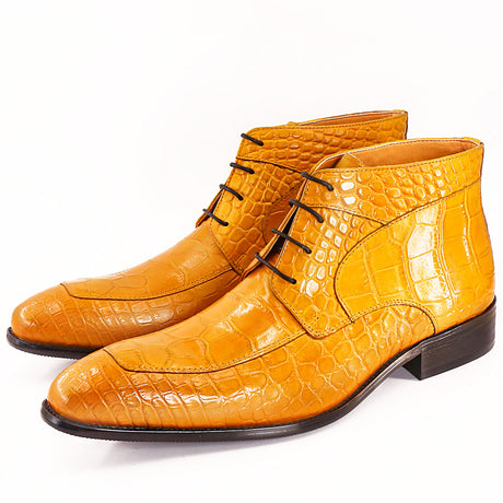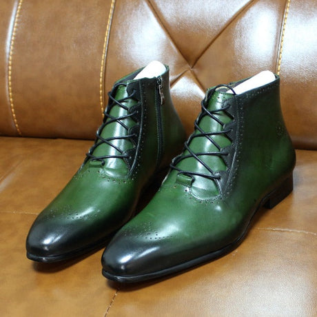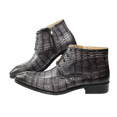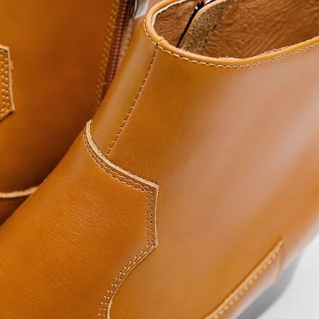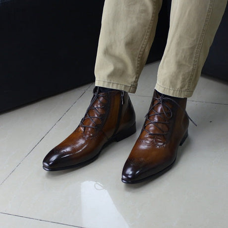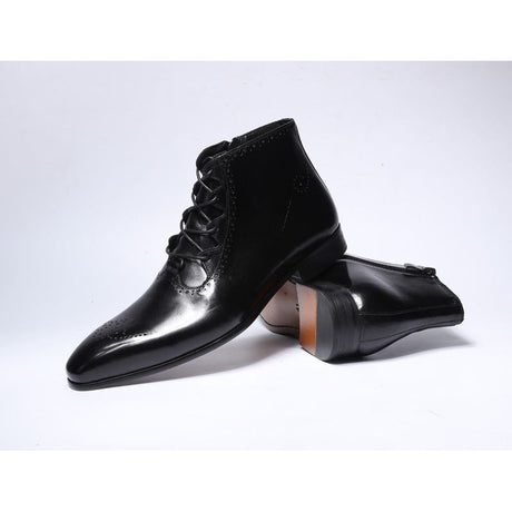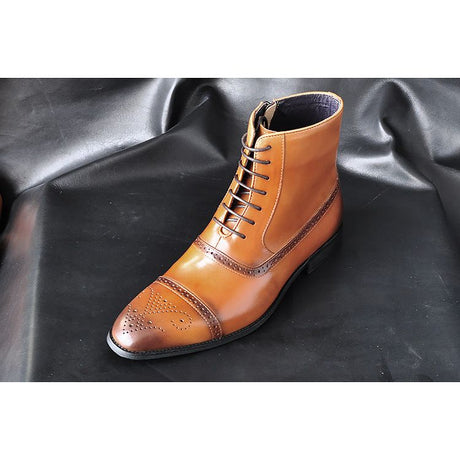 The Ostranuxe Noirelle Formal Boots are crafted from genuine cow leather with a solid pattern, featuring a lace-up closure and a pointed toe design. These ankle-height dress boots have a flat rubber outsole with a heel height of less than 0.4 inches.