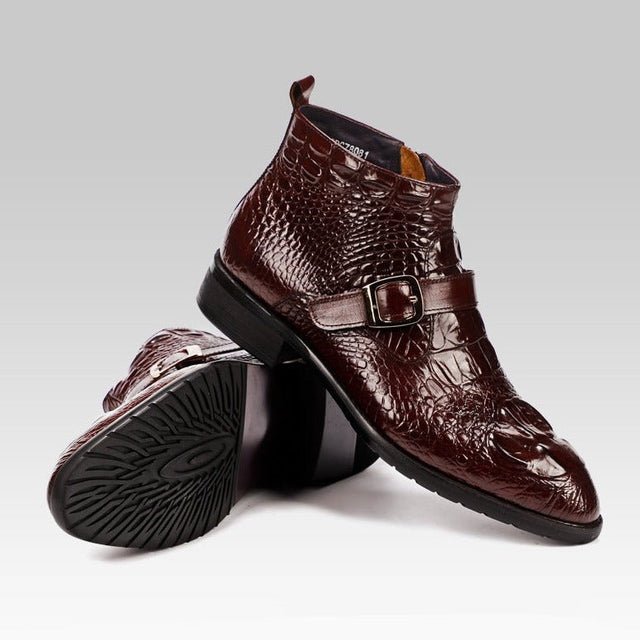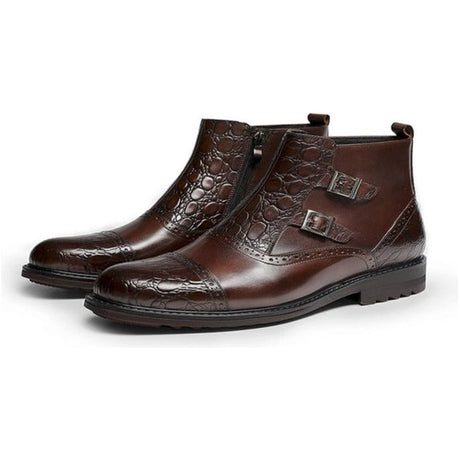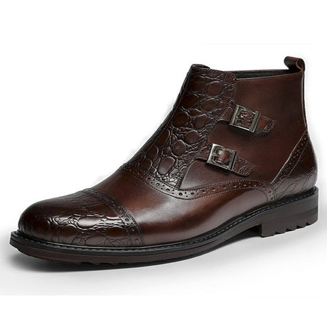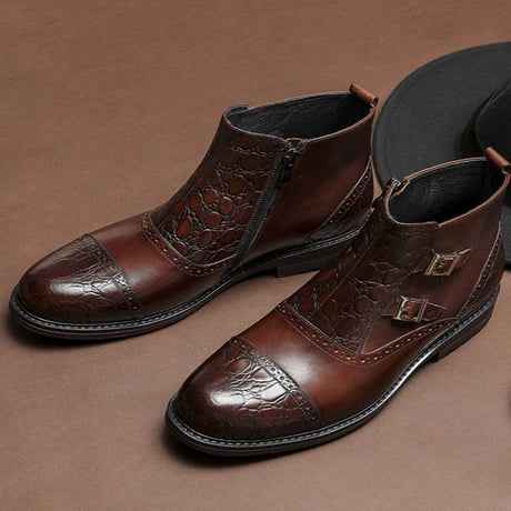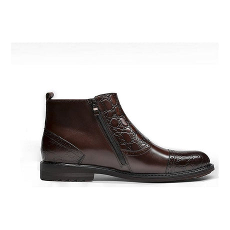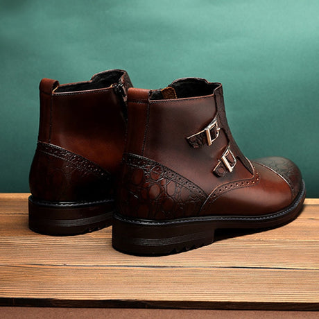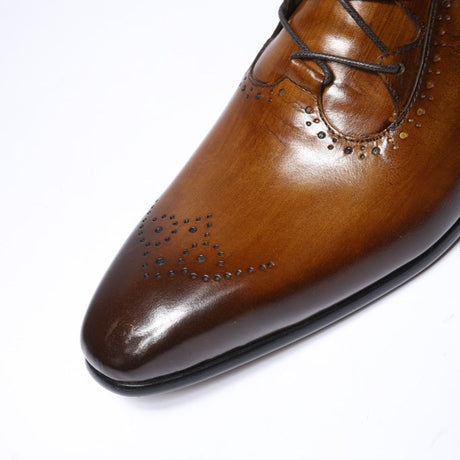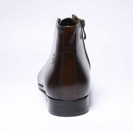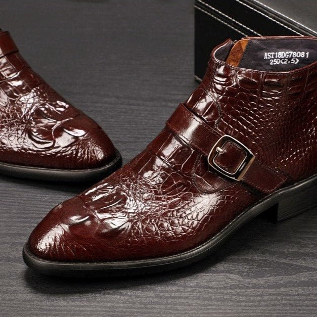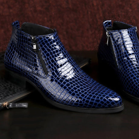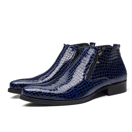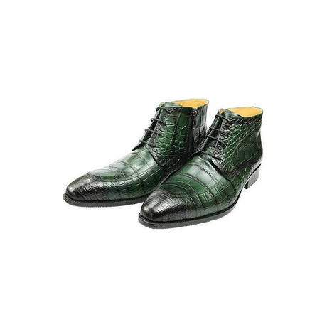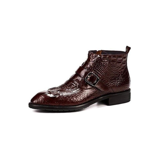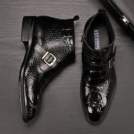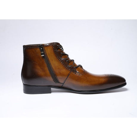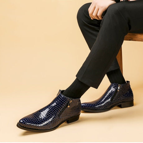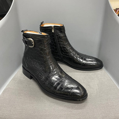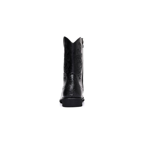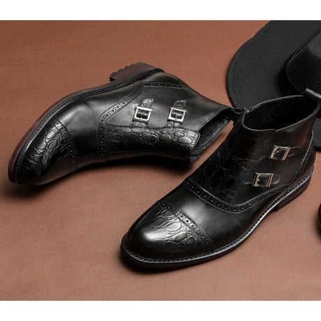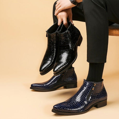 The Ostranuxe Noirelle Formal Boots are crafted from genuine cow leather with a solid pattern, featuring a lace-up closure and a pointed toe design. These ankle-height dress boots have a flat rubber outsole with a heel height of less than 0.4 inches.