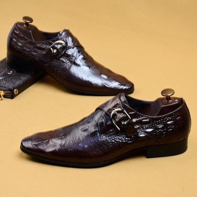 The Serpatura Classic Lace-Up Elegance Oxfords feature a solid pattern with a pointed toe design, crafted from genuine cow leather for the upper and full grain leather for the insole, while the rubber outsole ensures durability. These brogue shoes utilize a lace-up closure for a secure fit.