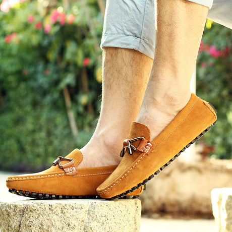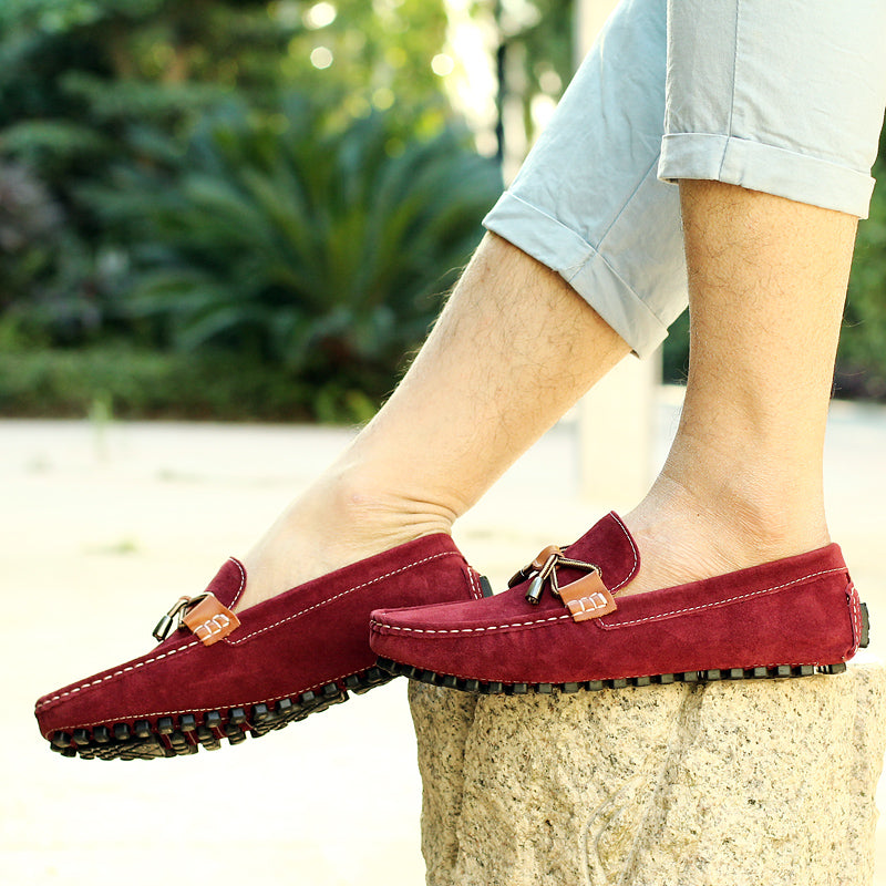 The Luxalon Auburnyx Casual Loafers are crafted from genuine cow leather with a solid pattern and feature a convenient slip-on closure. They have a round toe design and a durable rubber outsole, making them a practical choice for everyday wear.