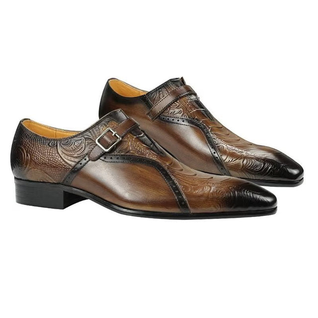 The Auburnyx Luxe Monk Footwear features a genuine cow leather upper, a PU lining, a pointed toe design, and a buckle closure.