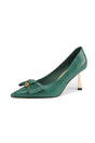 The Opulessa Diamoré Croc Stilettos feature a solid pattern crafted from cow leather, with a slip-on closure and a pointed toe design, complemented by a 3-inch heel height.