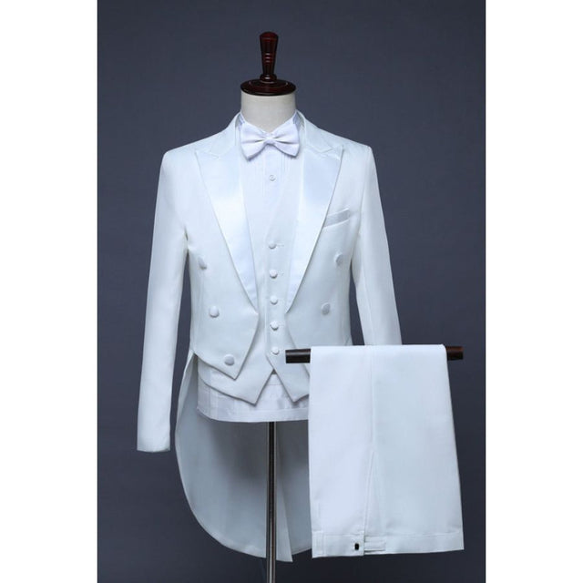 The ElegantFit Luxe 3-Piece Suit is crafted from a blend of acetate fiber and chemical fibers, featuring a skinny fit with a single-breasted closure and a zipper fly on the pants.