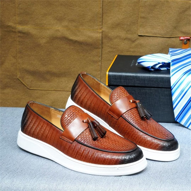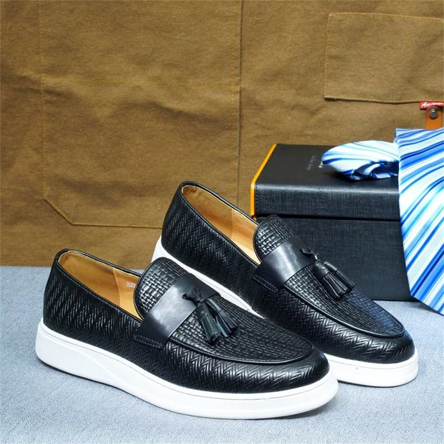 The Veltique Croctex Slip-On Loafers feature a genuine cow leather upper for durability and style, a convenient slip-on closure for easy wear, and a rubber outsole for reliable traction, complemented by a shallow design for a sleek appearance.