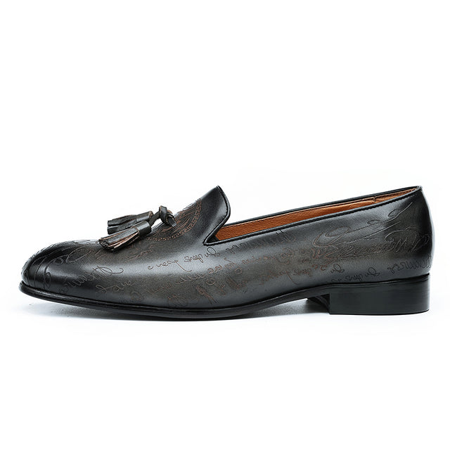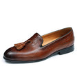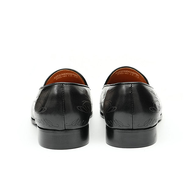 The Opulessa Snakara Event Slip-ons are crafted from high-quality cow leather with a solid pattern, featuring a convenient slip-on closure and a comfortable round toe design, complemented by a durable rubber outsole.