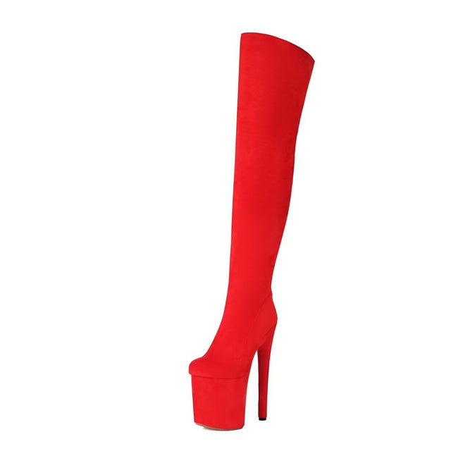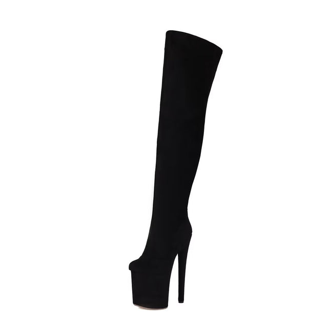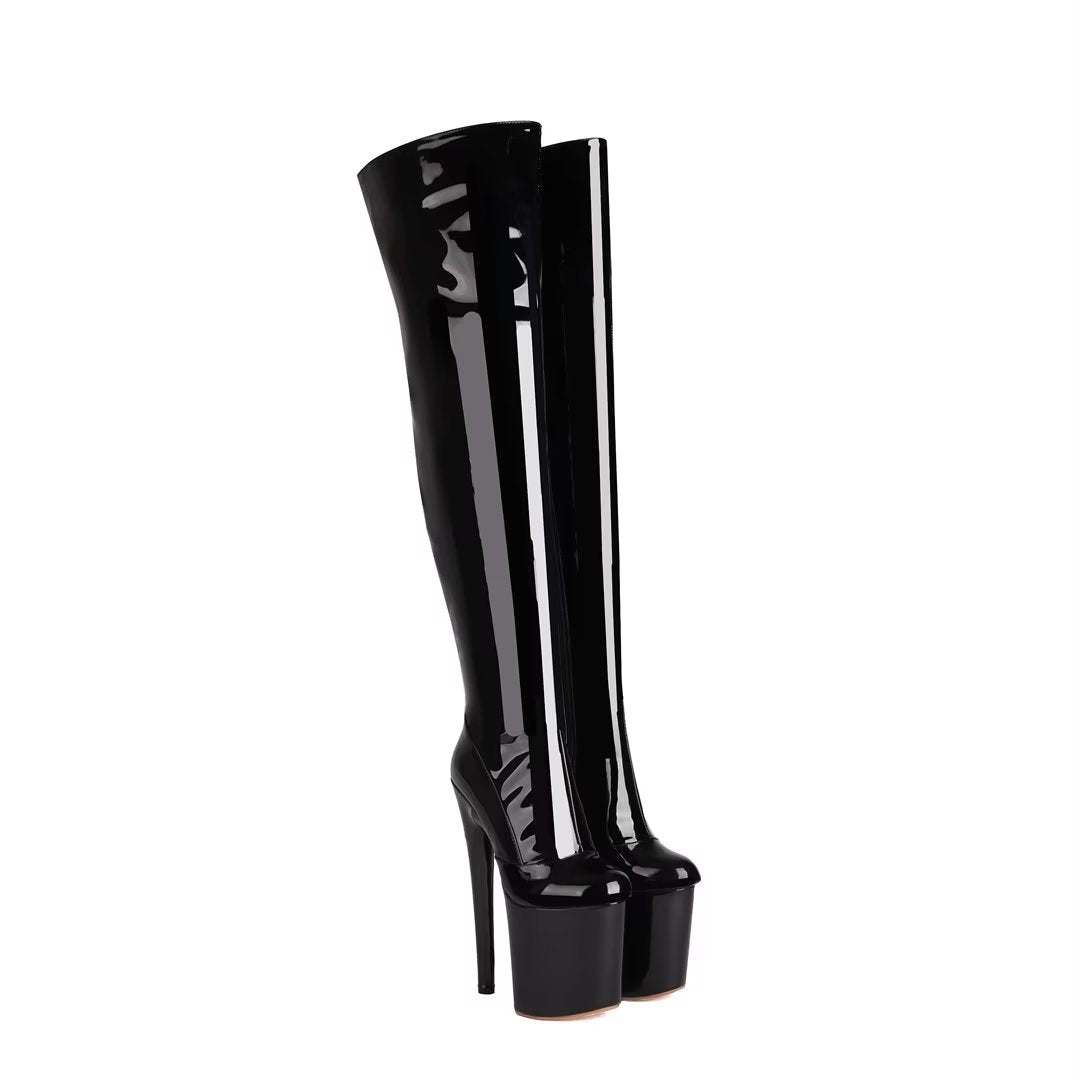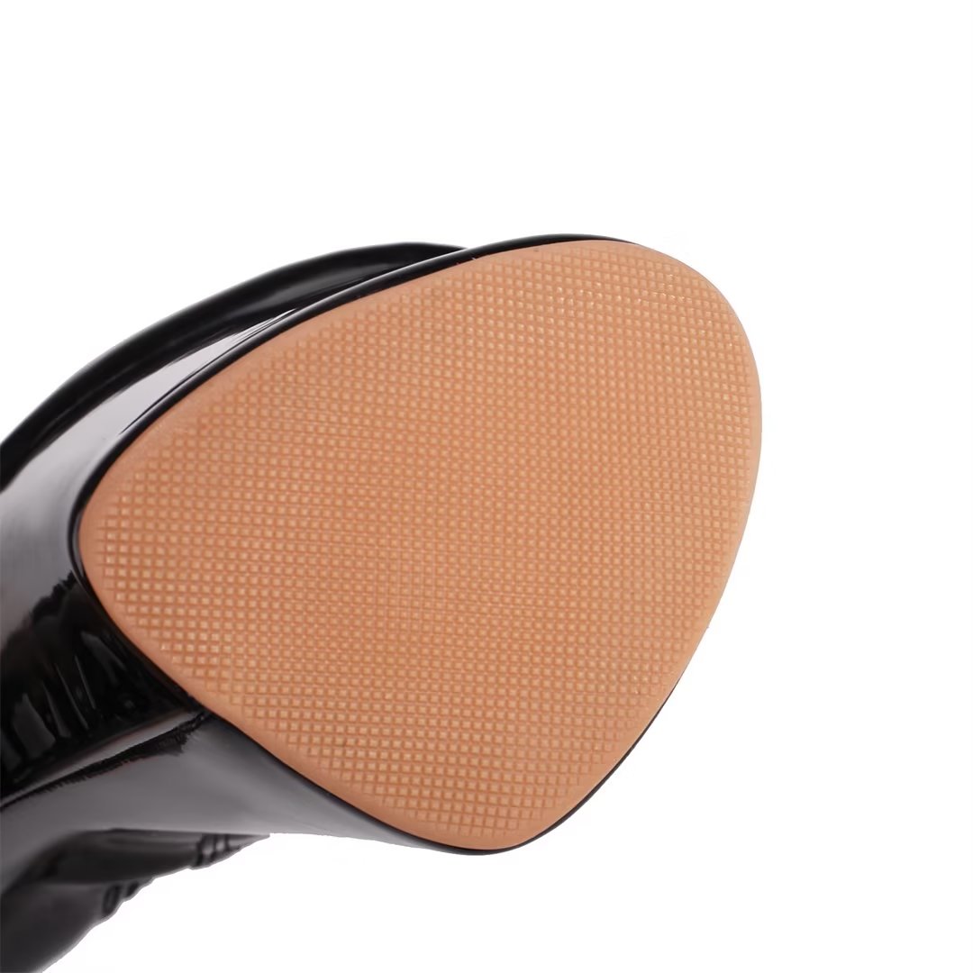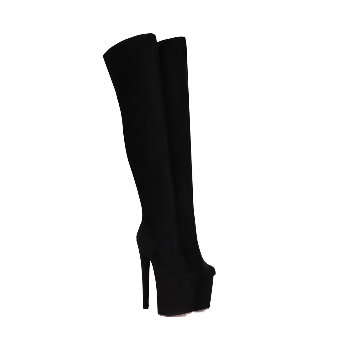 The Marbelleve Luxe Event Boots feature a microfiber upper with a round toe design, ideal for winter wear. They have a convenient zip closure and a short plush insole for added comfort. The boots boast a substantial heel height of approximately 6.1 inches and a platform height of about 2.2 inches. The tall boot design includes a cylinder height of 23.6 inches and a circumference of 18.9 inches, with a durable rubber outsole for reliable traction.