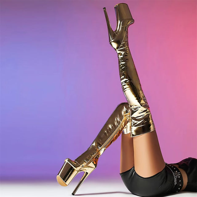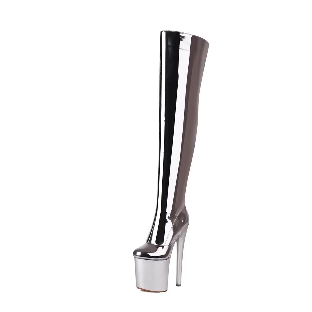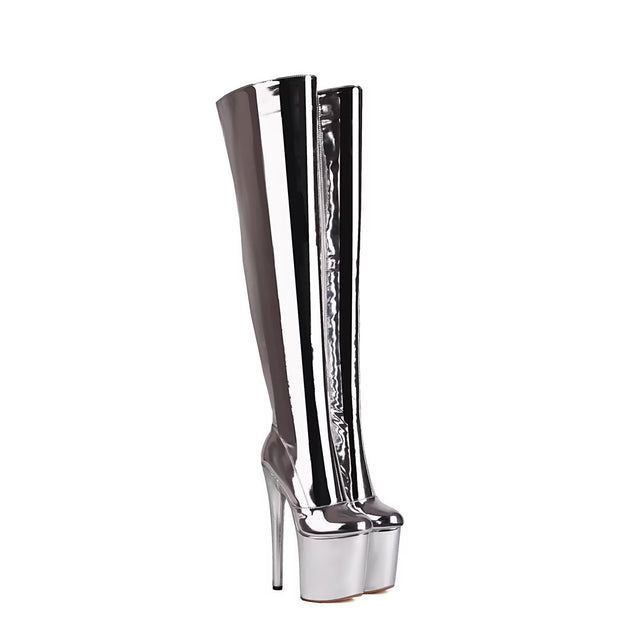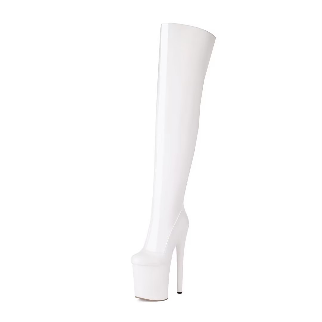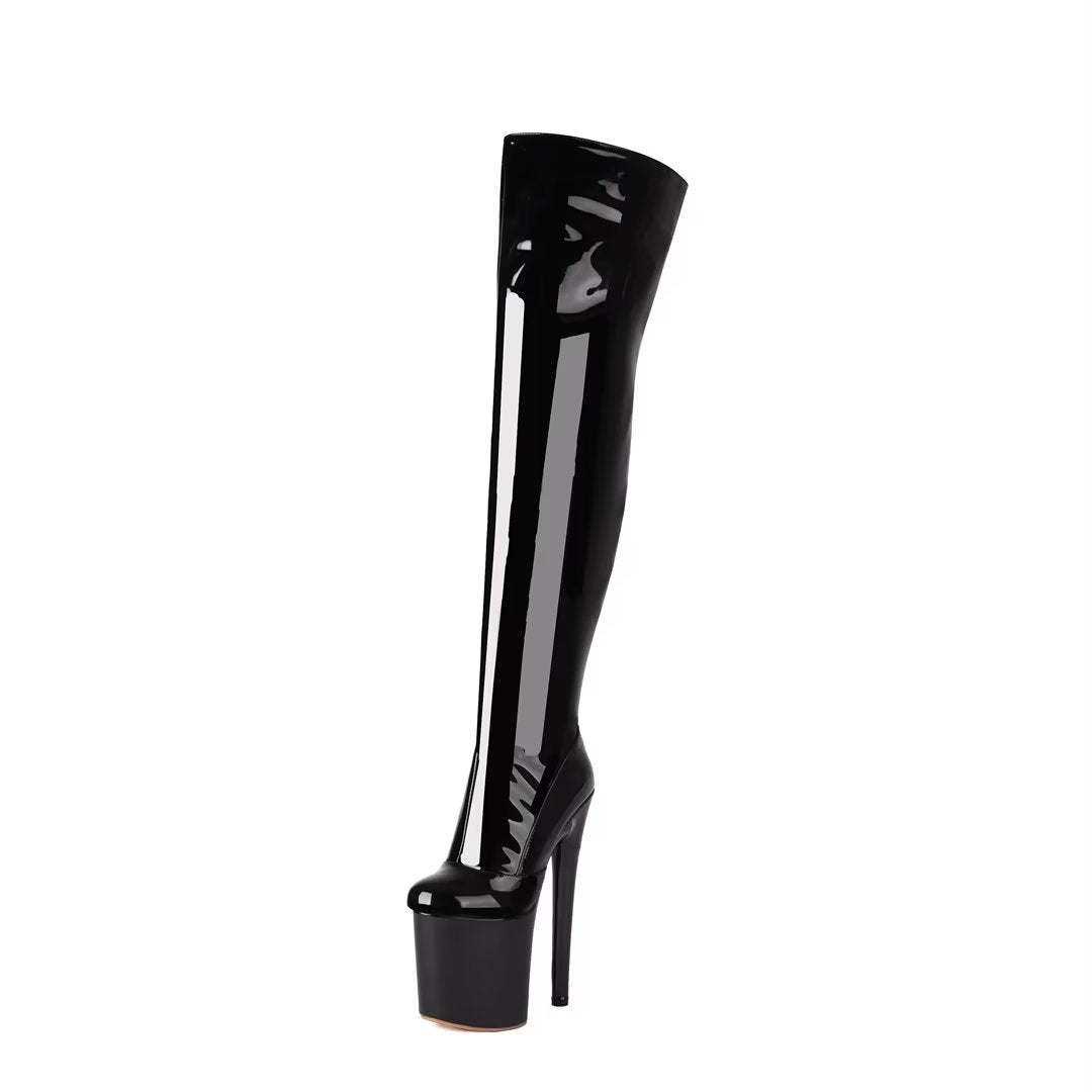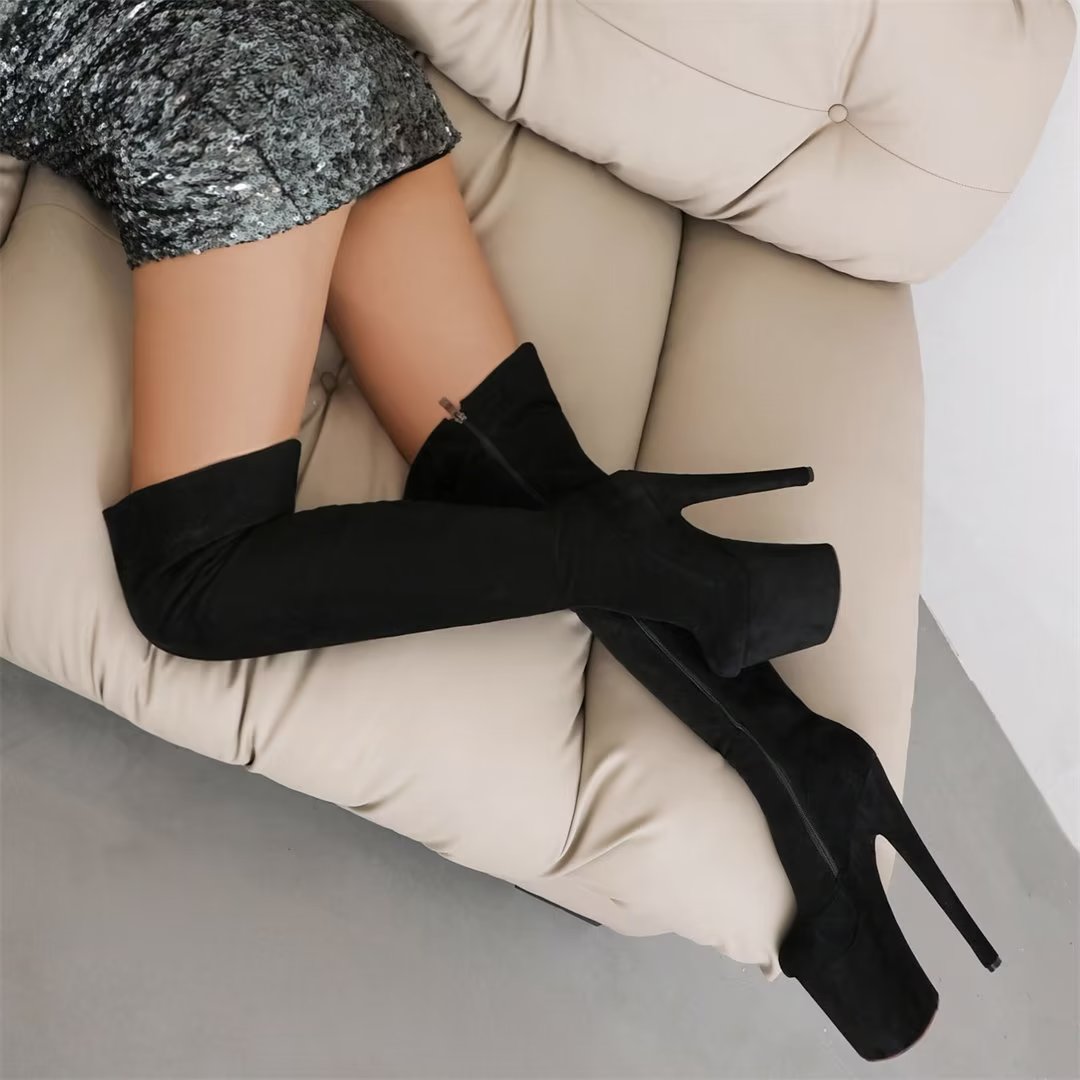 The Marbelleve Luxe Event Boots feature a microfiber upper with a round toe design, ideal for winter wear. They have a convenient zip closure and a short plush insole for added comfort. The boots boast a substantial heel height of approximately 6.1 inches and a platform height of about 2.2 inches. The tall boot design includes a cylinder height of 23.6 inches and a circumference of 18.9 inches, with a durable rubber outsole for reliable traction.