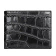 The Ebonique Wallet with Zipper is crafted from durable cow leather with an alligator pattern, featuring a secure zipper closure. Inside, it offers practical organization with an interior slot pocket, cell phone pocket, interior zipper pocket, key chain holder, and compartment, all within a hard, casual tote shape.