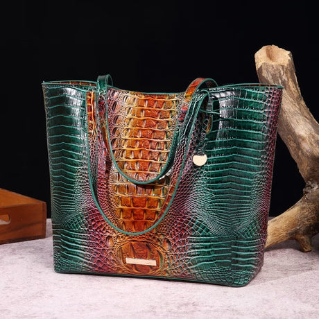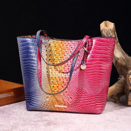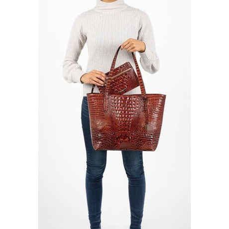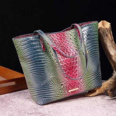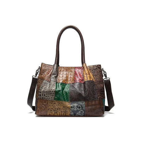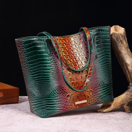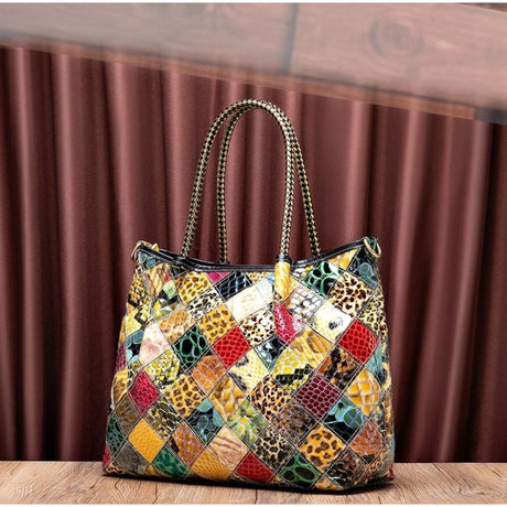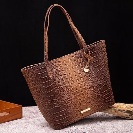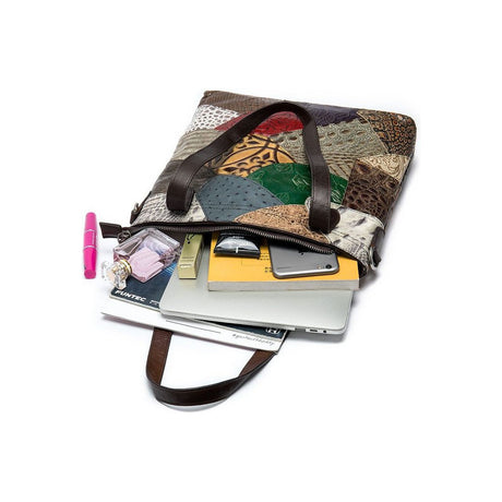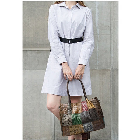 The Fieralis Exotic Tote is crafted from genuine cow leather, featuring a single handle and a hasp closure. It measures 11.02 inches in height and is lined with durable polyester, making it a practical and stylish choice for everyday use.
