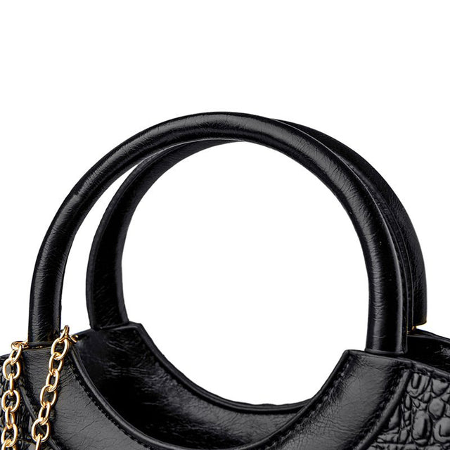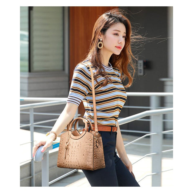 The Diamoré Goldara Zip Tote is crafted from durable PU material and features a secure zipper closure. Its dimensions are approximately 11.4 x 5.1 x 9.8 inches, offering ample space for daily essentials.