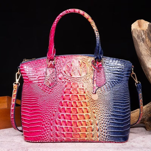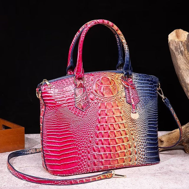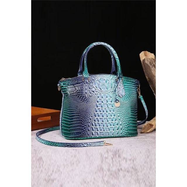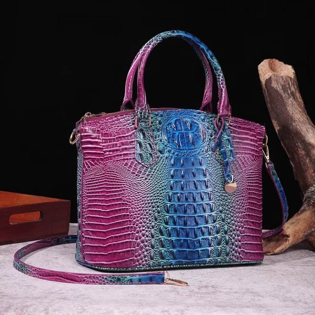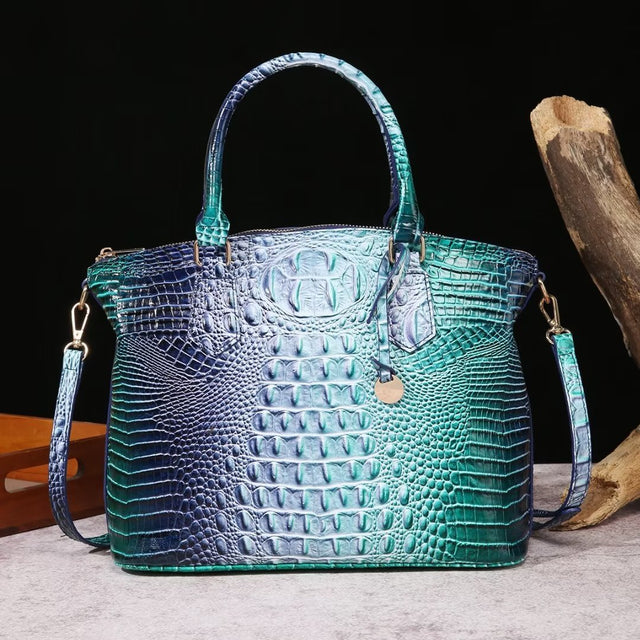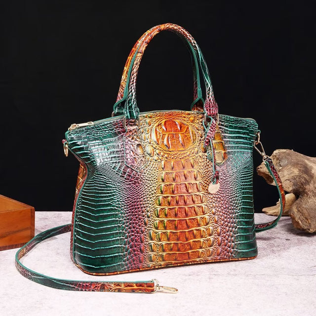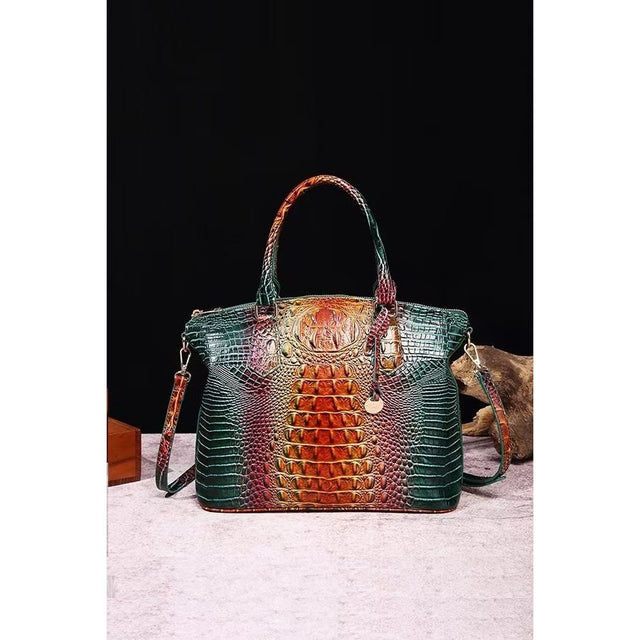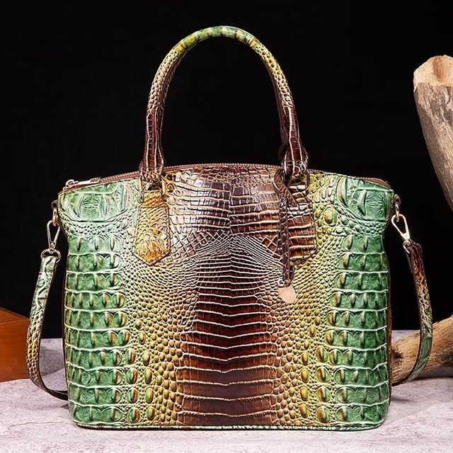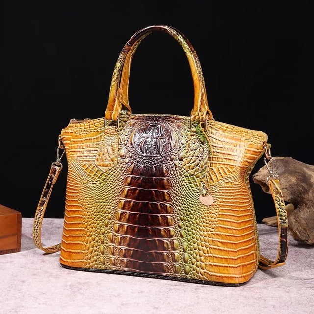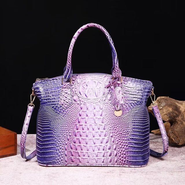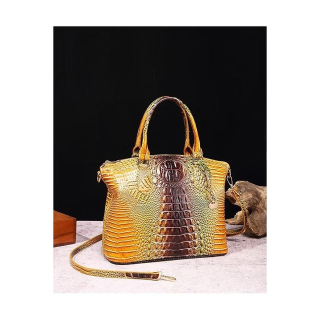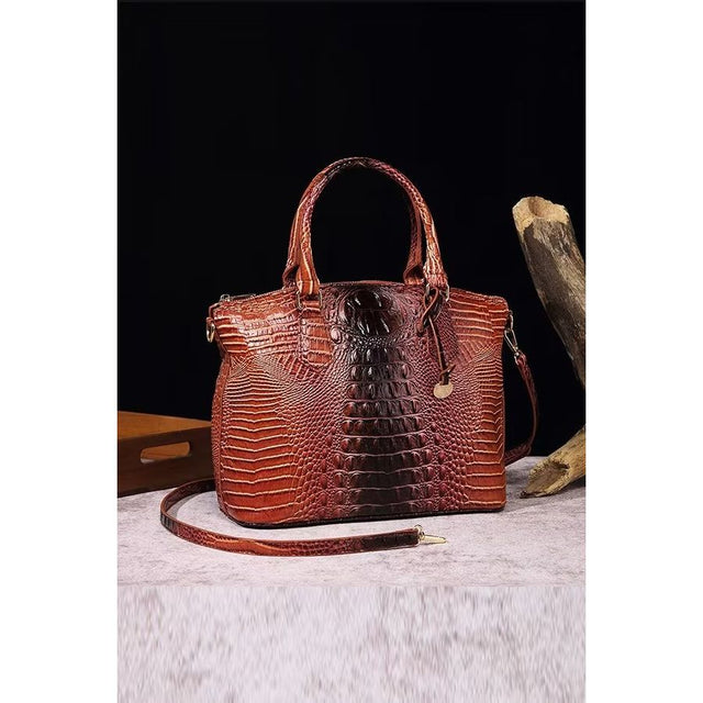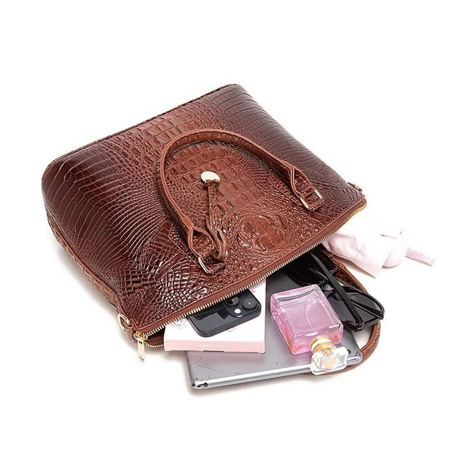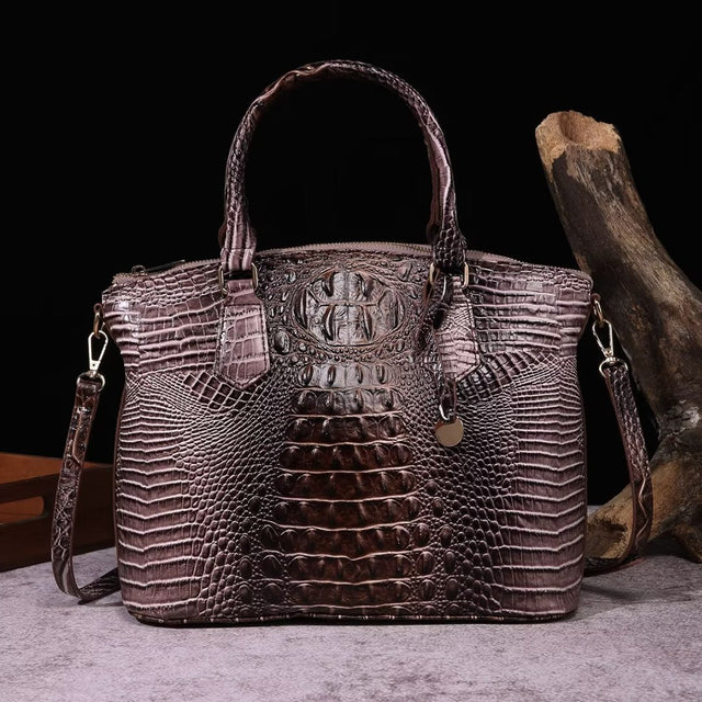 The Veltique's Chic Carry-All Tote is crafted from soft PU material with an alligator pattern, featuring a secure zipper closure and a polyester lining, designed in a casual tote shape.
